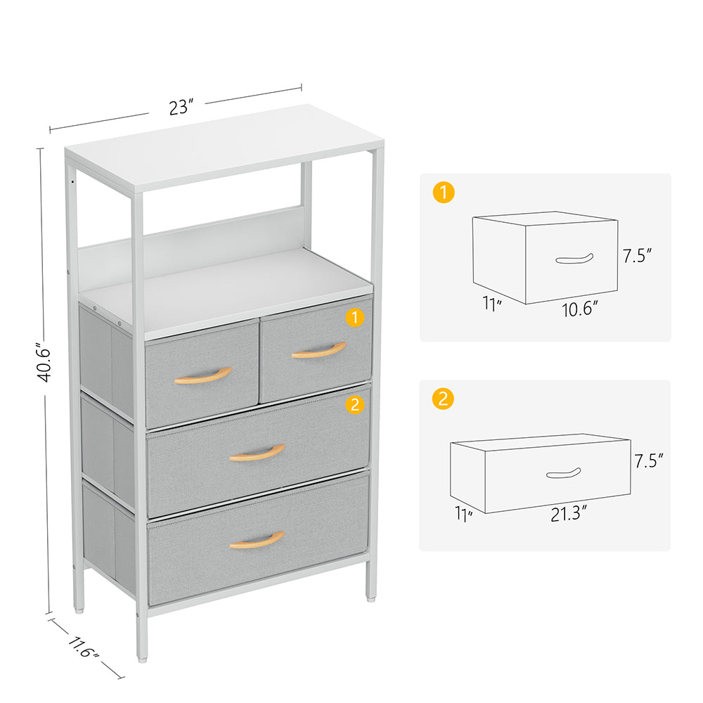 4 drawers dresser with Shelves, Different styles and colors of drawers, Clear installation manual
