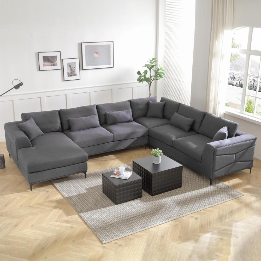 Going Fast Large Sectional Sofa,145"(l)x117"(w) Classic Look With Tufted Pattern On Outer Armrest And Back, Dark Grey Save 50% Now [CZW4fdxK]