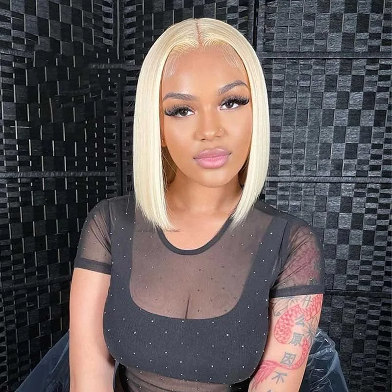 Halloween Special Short Bob Wig Straight Human Hair Wigs Blonde 613 Colored Lace Front Human Hair Wigs 13x4 Lace Frontal Human Hair Wig For Women Perfect For Gifting [O5qzNlRK]