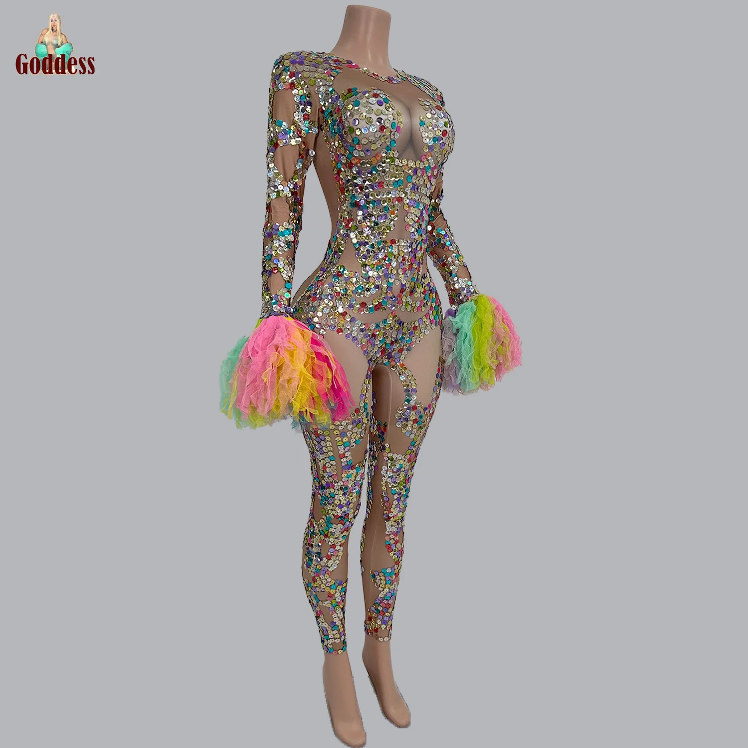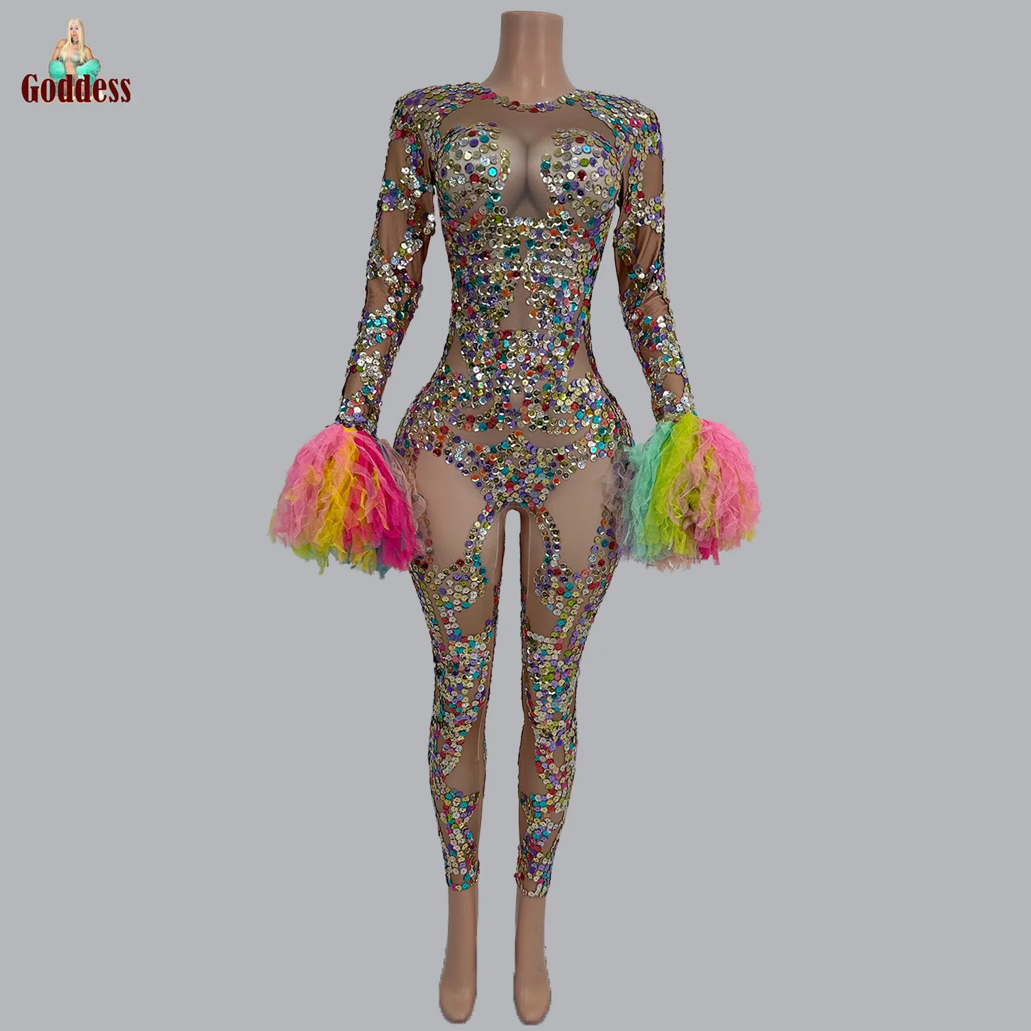 Worldwide Shipping Sparkly Sequins Elastic Spandex Jumpsuit Sexy Women Nightclub Singer Dancer Performance Costume Show Stage Tight Fitting Wear Series [gQGDqX9a]