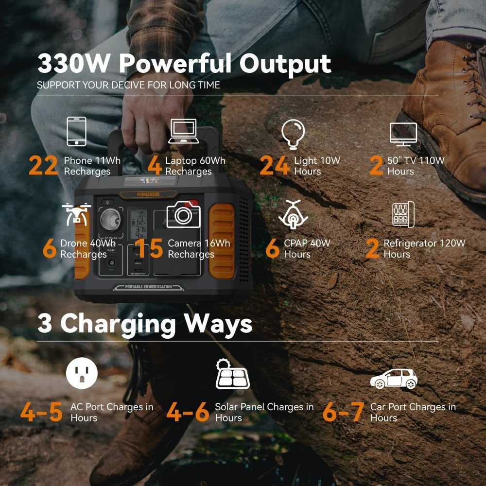 Durable Portable Power Station, Solar Generator With 120v Pure Sine Wave Ac Outlet, Backup Lithium Battery Power Supply, 330w | 28 90% Off - Today Only [zE4kmVtq]