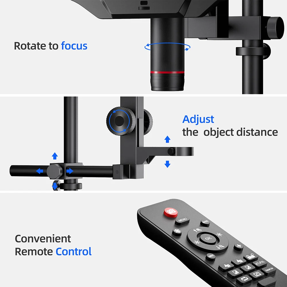 10.1 inch display:10.1 inch display brings you perfect visual experience. For most people, no more external display is needed, the microscope itself can meet all their visual demands.
