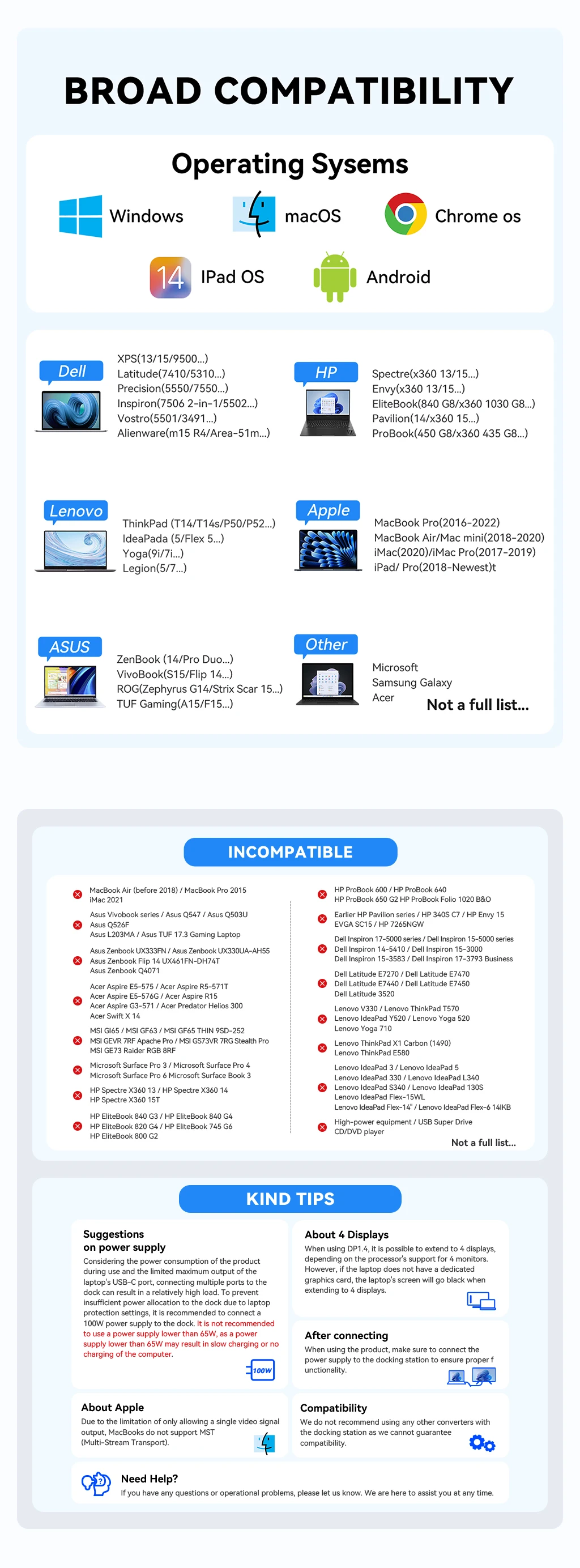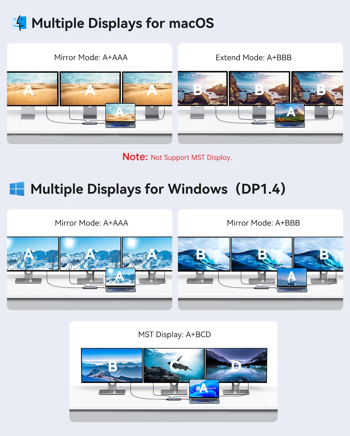 Kindly checking and make sure that your device has one of Thunderbolt 3/4, full-function USB C port (supports Displayport/ DP Alt mode), USB 4.0.