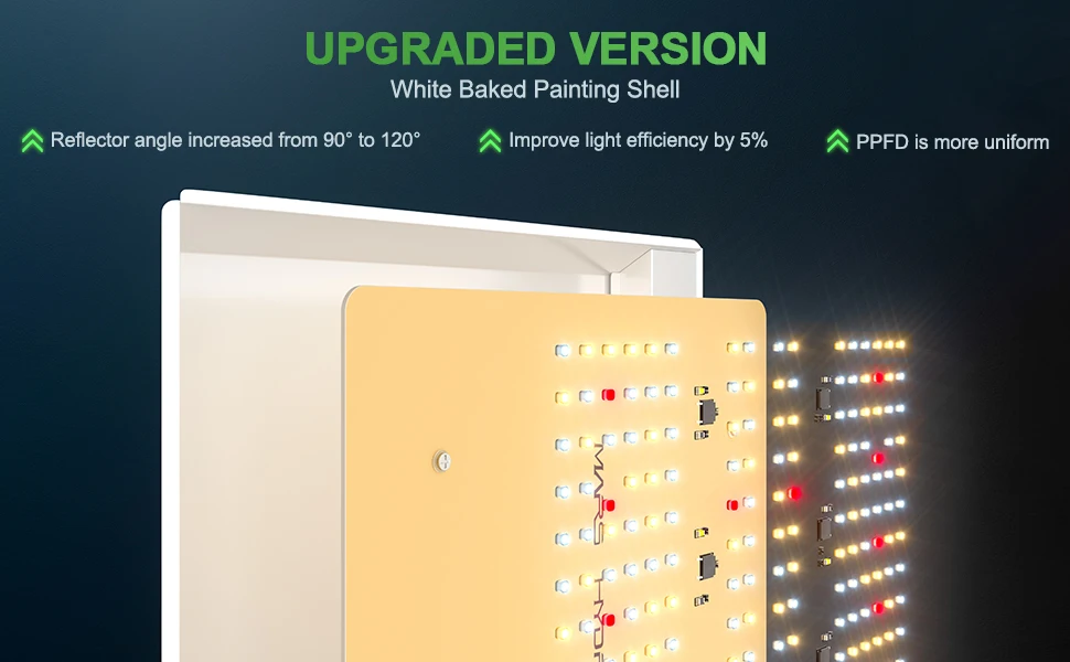 The light efficiency can be increased by the aluminum hood that acts as a reflective, scientifically engineered to keep the balance of PAR output and coverage area. Extremely bright, ideal for all kinds of indoor plants at all growth stages especially veg and flower.