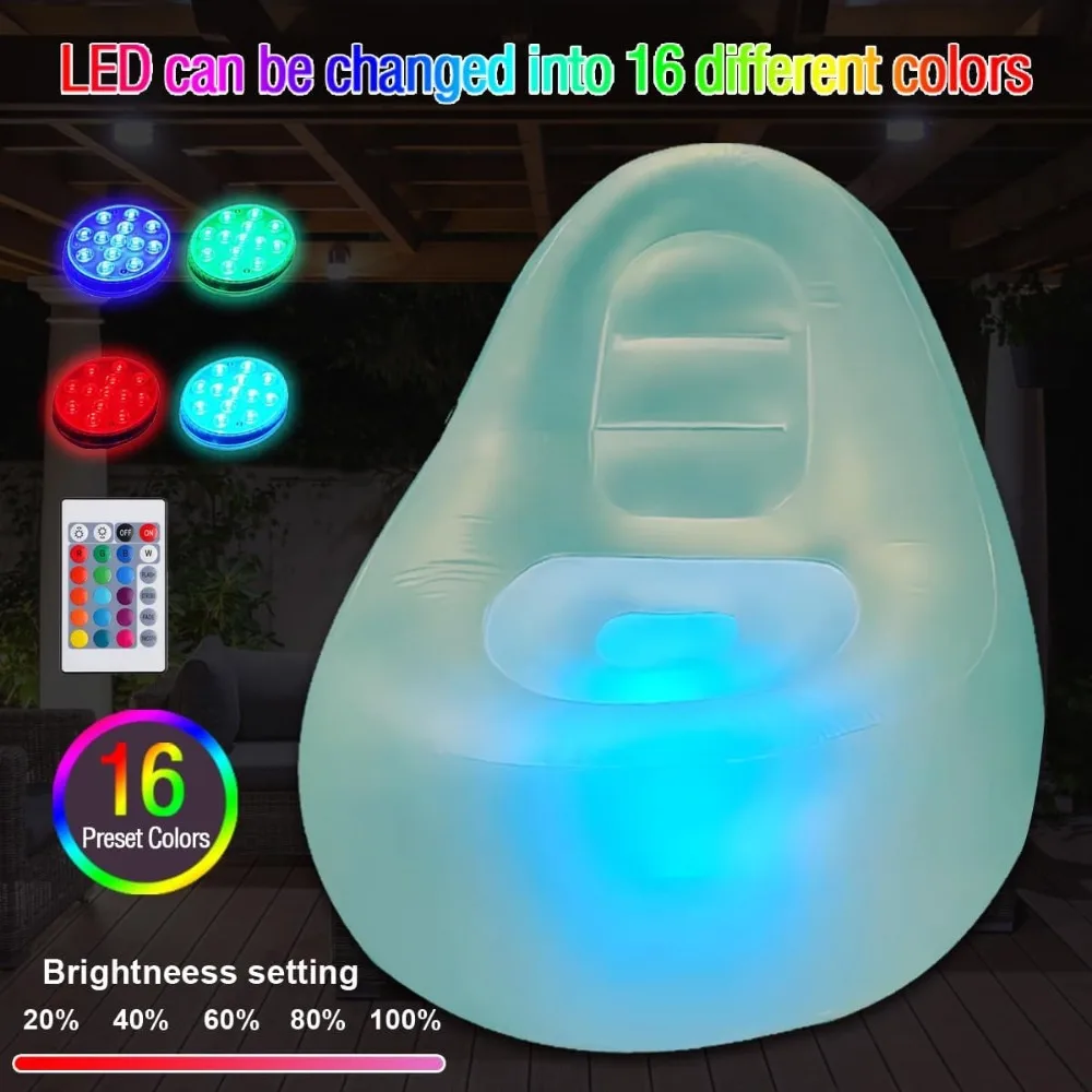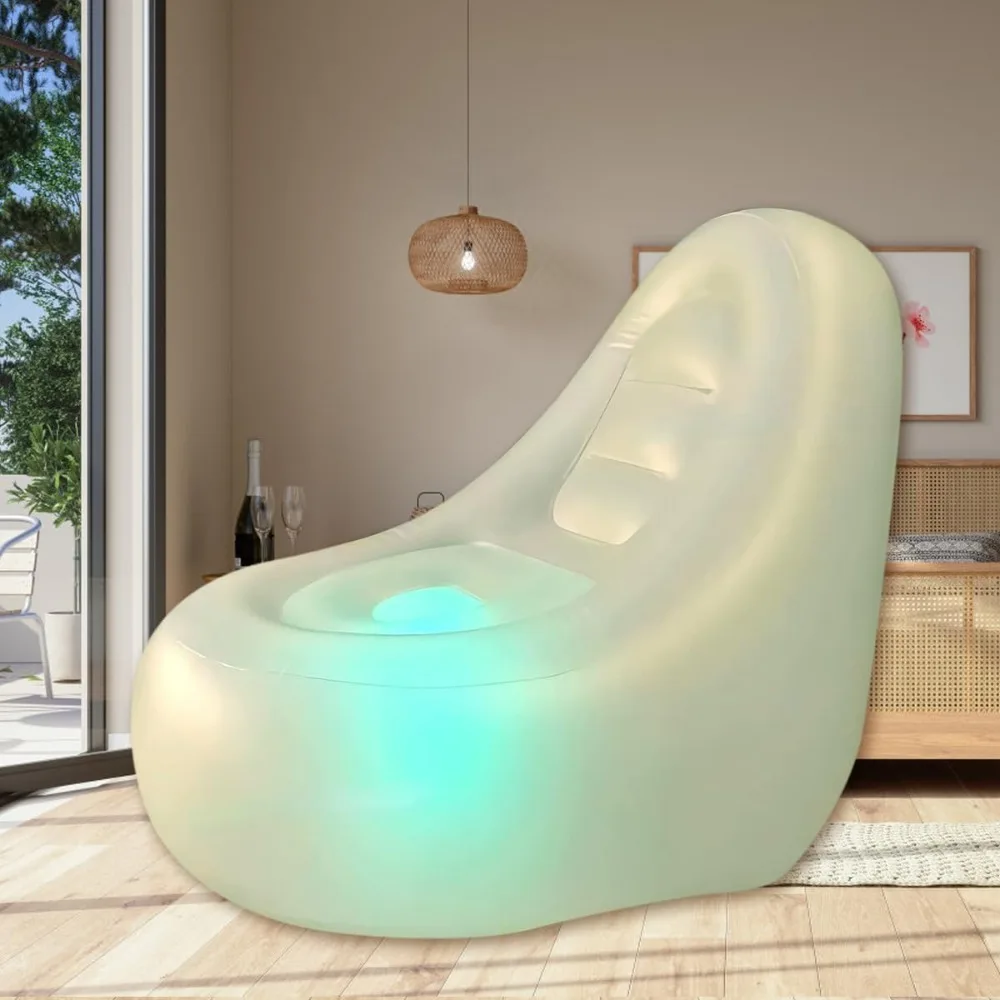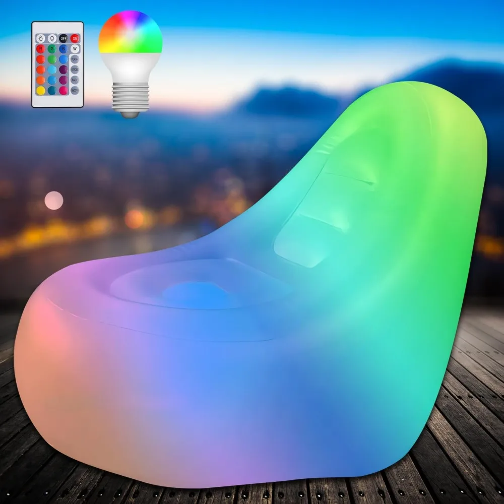 - ✔️【LED AIR CHAIR 】:This is comfortable and creative inflatable chair for adults and teens. It is also equipped with a color-changing LED light. Place it in the bottom of couch chair, and with a remote control, you can choose various modes such as constant light or blinking in multiple colors. (does not include AAA batteries)