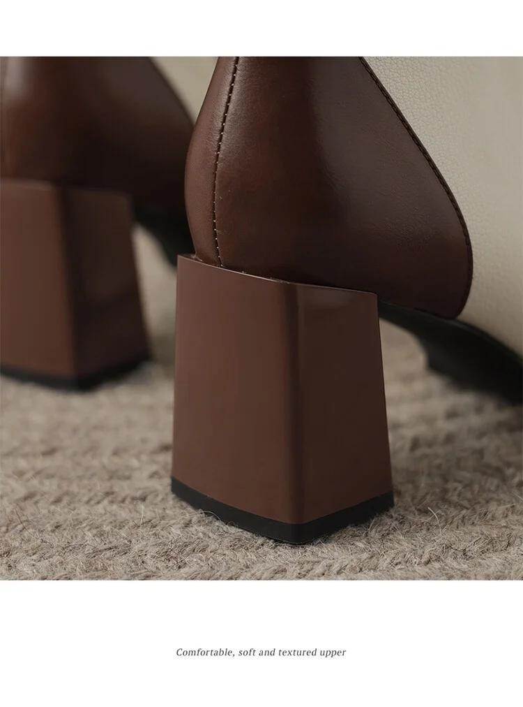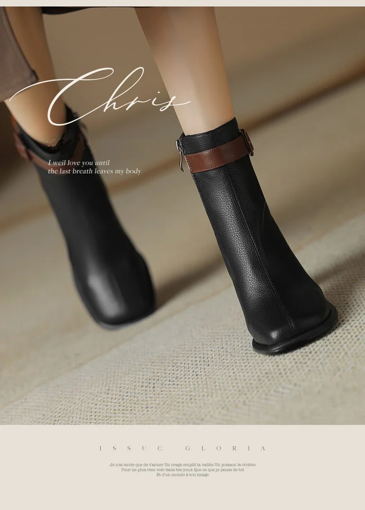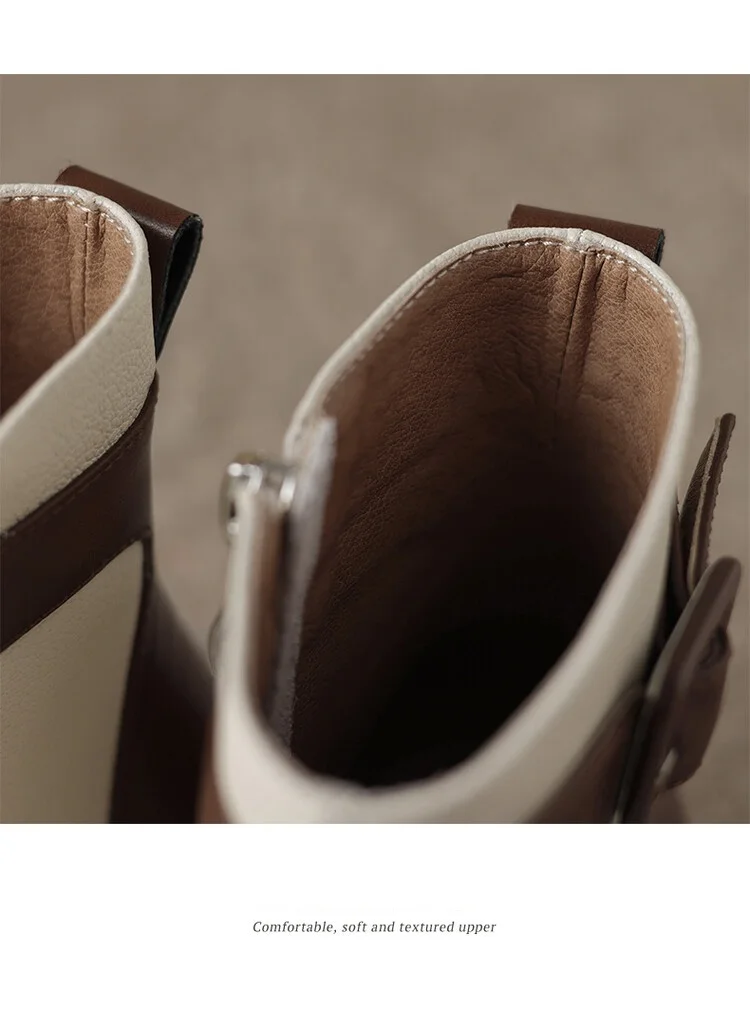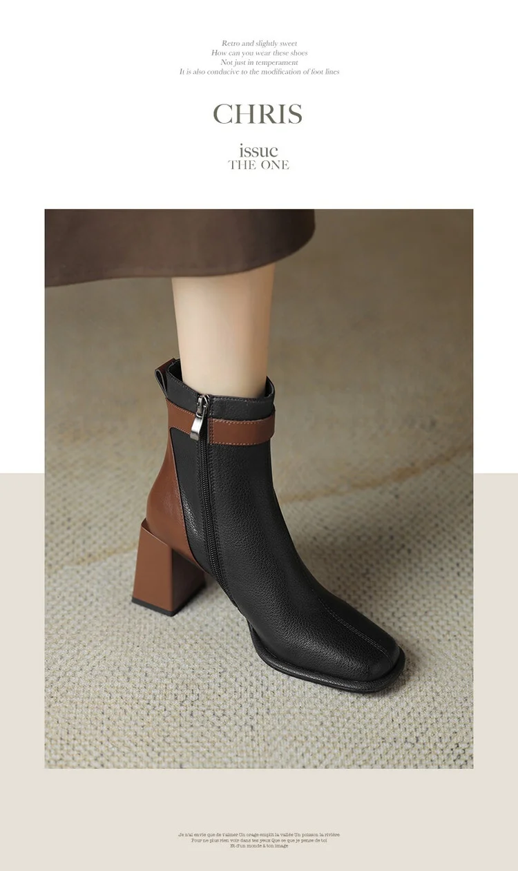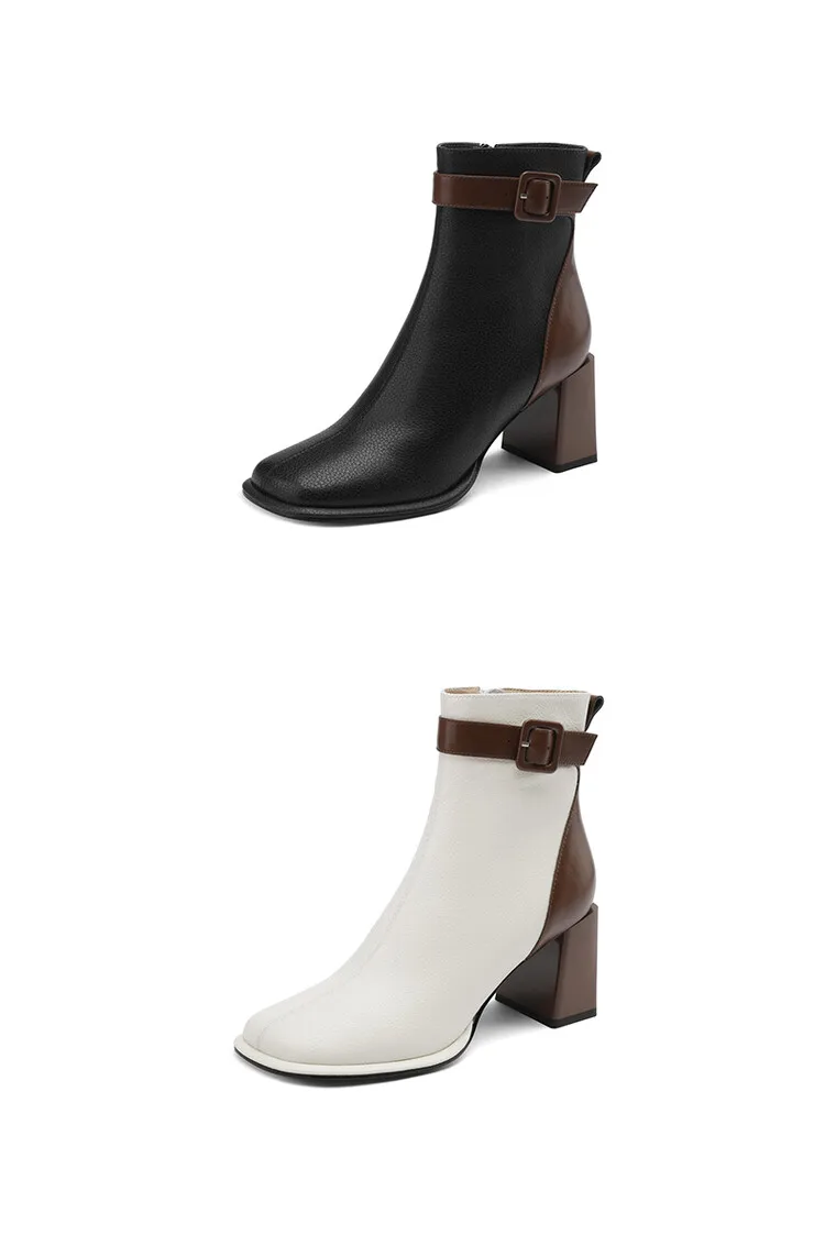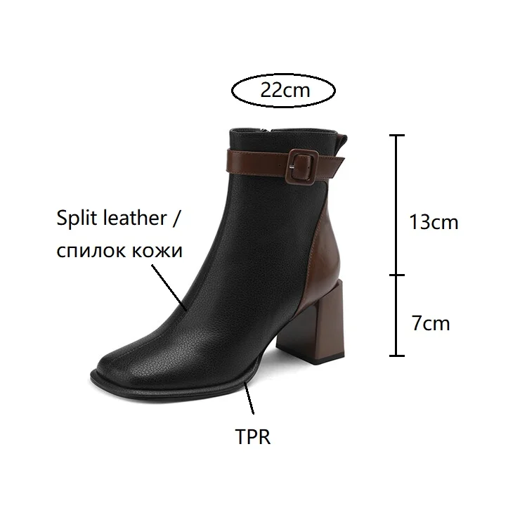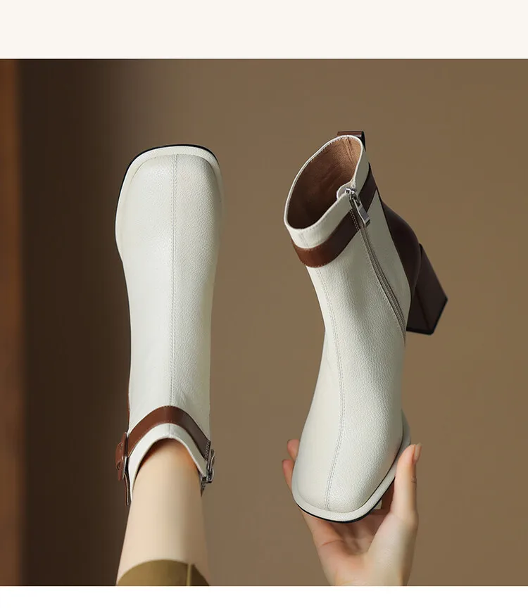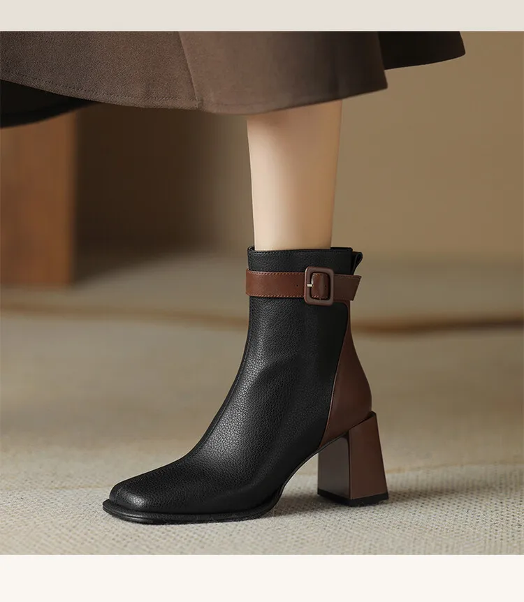 Innovative Swvws Autumn Shoes Autumn Boots Women Square Toe Women Boots Split Leather Shoes For Women Mixed Colors Belt Buckle Boots Winter High Heel Boots Accessory [LFNosAyR]