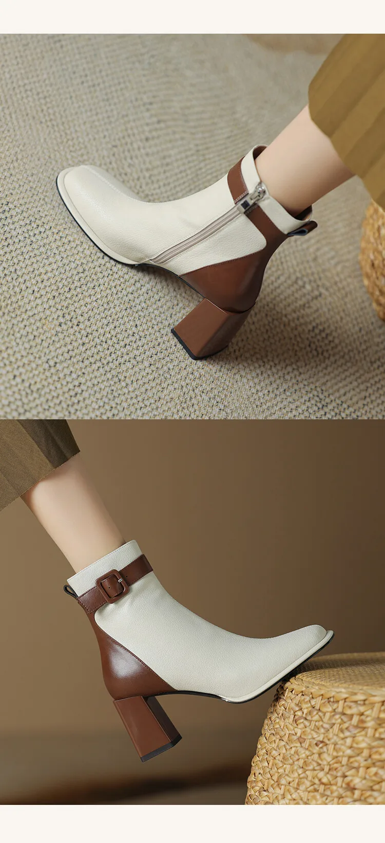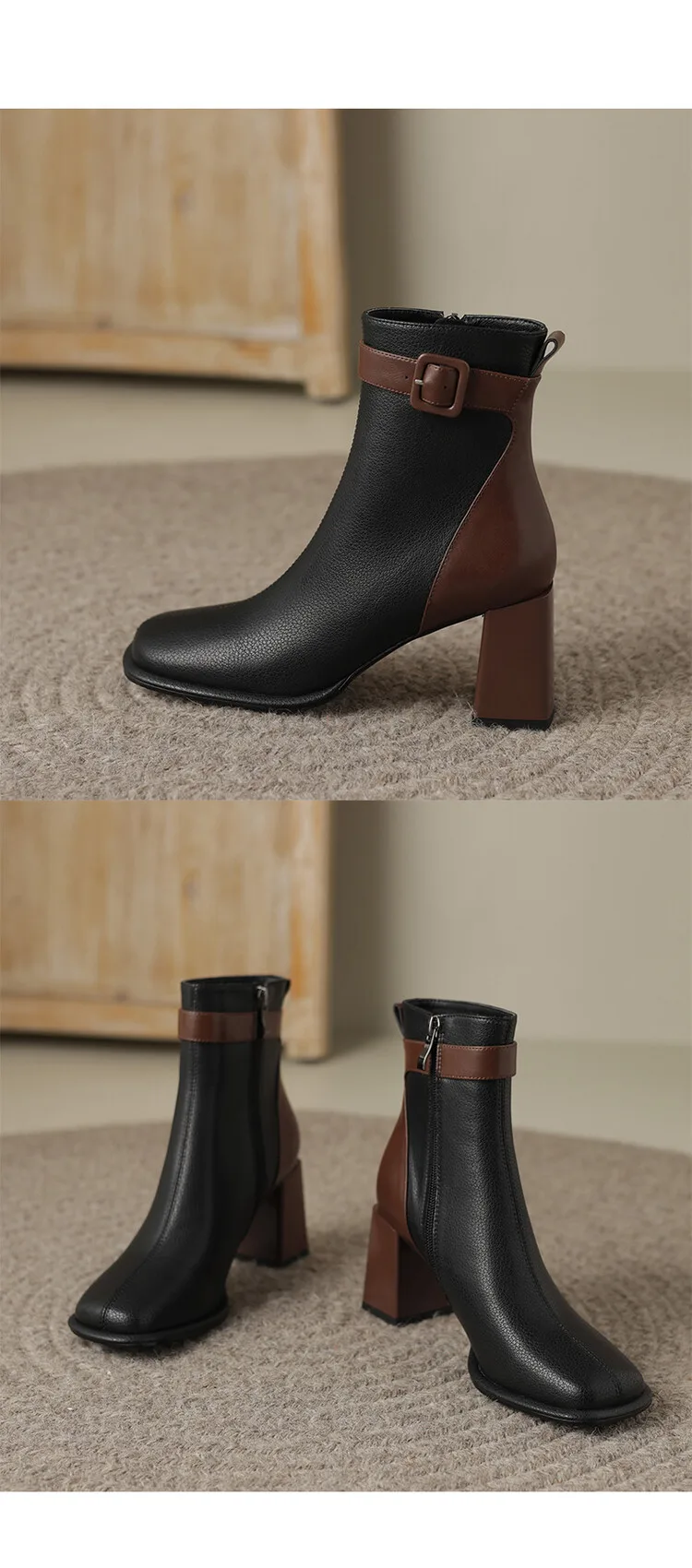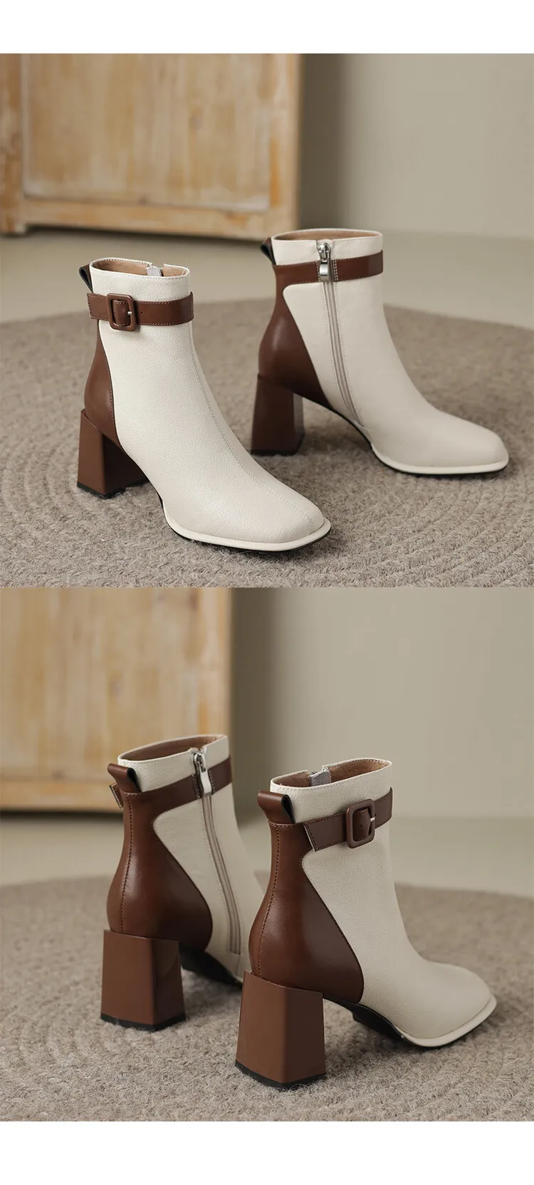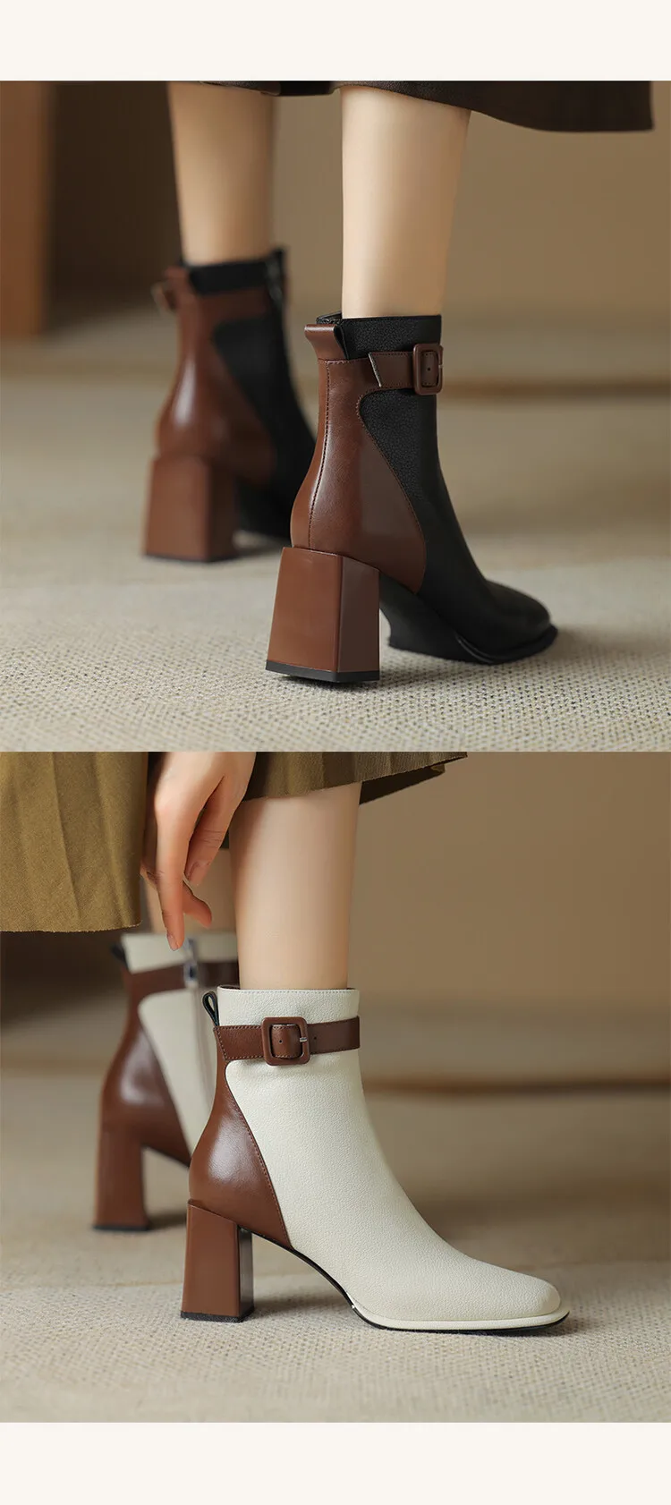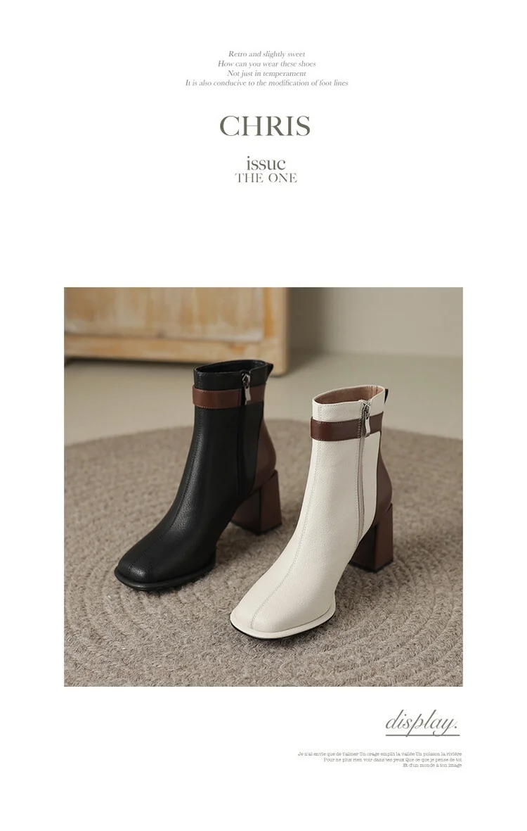 Innovative Swvws Autumn Shoes Autumn Boots Women Square Toe Women Boots Split Leather Shoes For Women Mixed Colors Belt Buckle Boots Winter High Heel Boots Accessory [LFNosAyR]