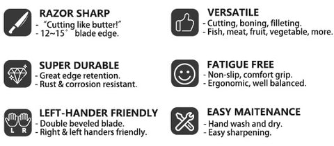 Blade Length: 6 Inch Blade Material: Japanese VG10 Steel Core + 72-layer Real Damascus Steel Handle Material: G10 Handle Hardness Grade: HRC 60±1 Product Series: Elite Series
