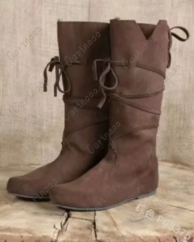 Universal Medieval Viking Costume Retro Men Knight Boots Larp Shoes Pu Leather Warrior Cosplay Fancy Carnival Party Anime Shoes Nordic Perfect For Gifting [OETWeJ7Q]