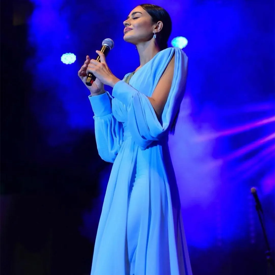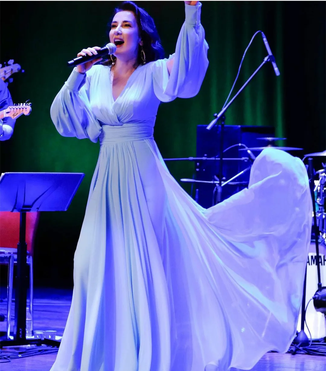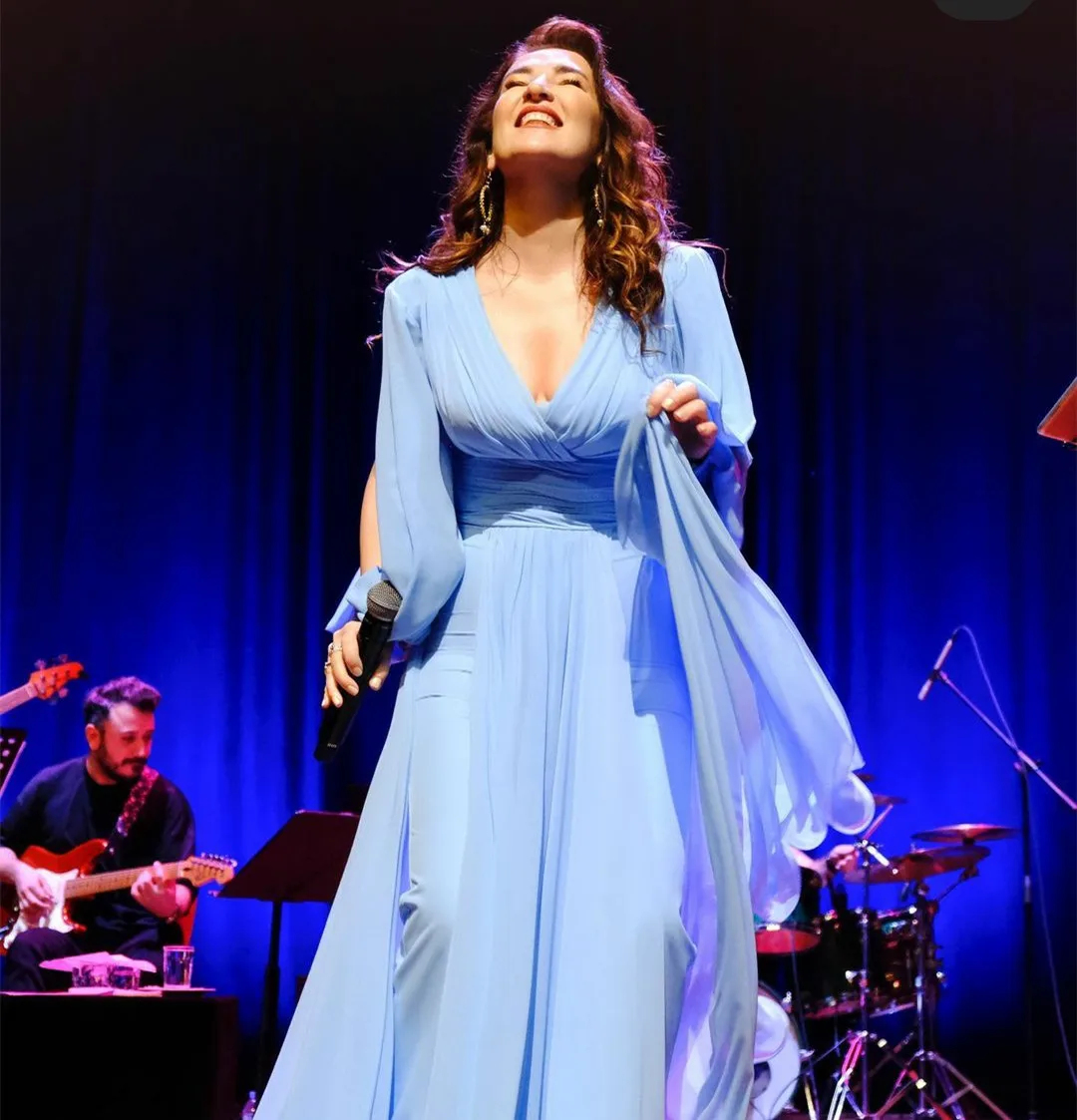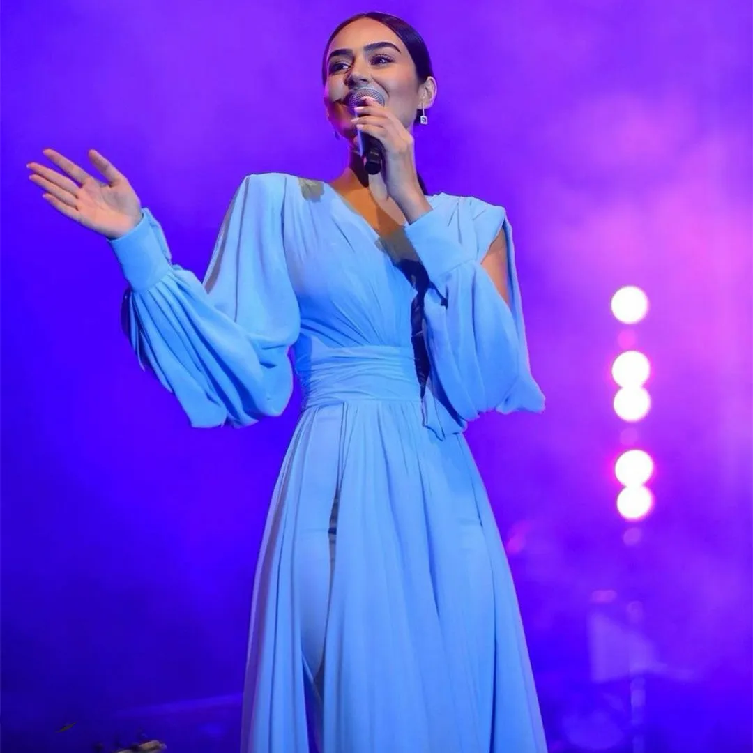 Holiday Gift Guide Elegant Long Sleeve Light Blue V-neck Evening Dresses A-line Chiffon Floor Length Pleated Prom Dresses For Women Your 35% Coupon Inside [4PqruabZ]