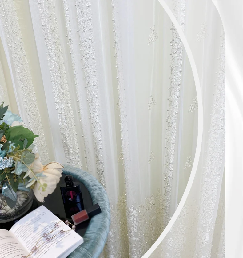 Viral French Romantic Girl Lace Opaque Pearl Embroidered Lace White Screen Curtains For Living Room Bedroom Partition Decoration Limited Time 45% Off [HwN8TGMv]