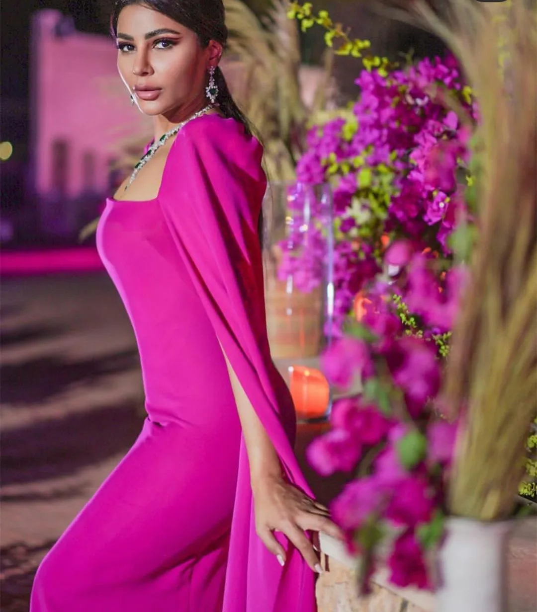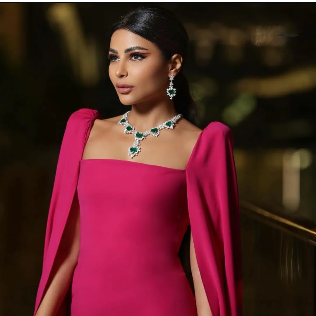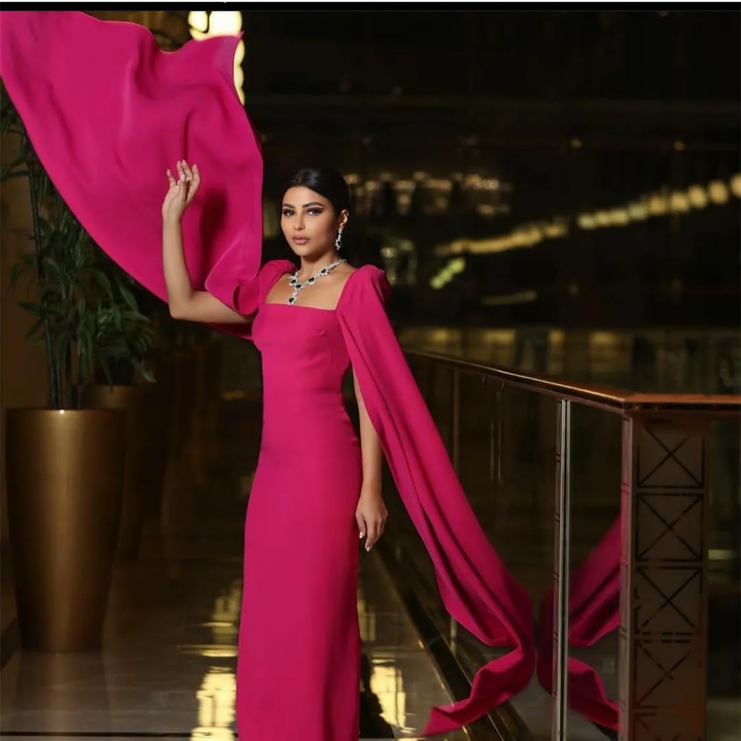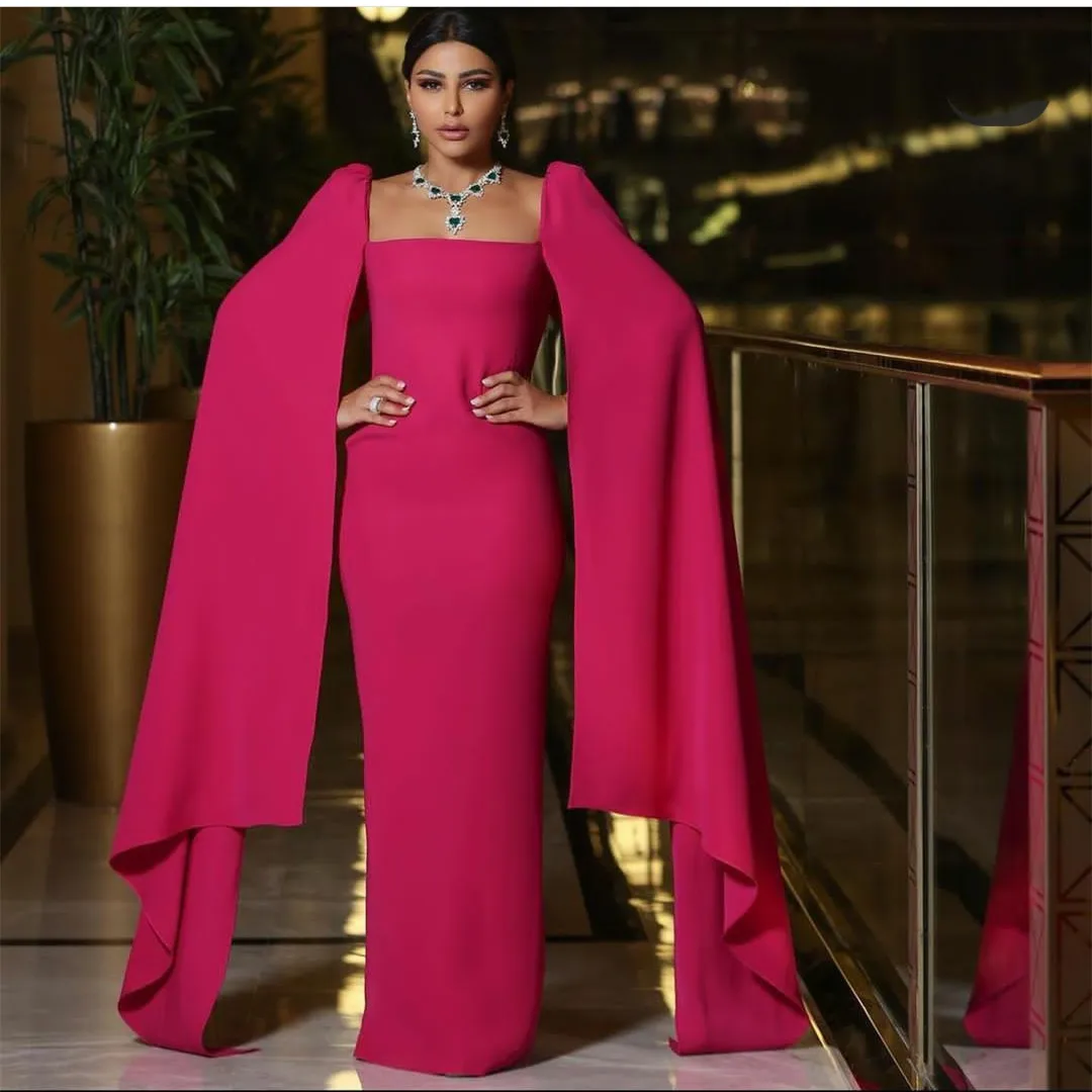 Handcrafted Elegant Long Sqaure Collar Evening Dresses With Cape Sheath Floor Length Zipper Robe De Mariée Party Gown For Women Full Package [iMVP26OS]