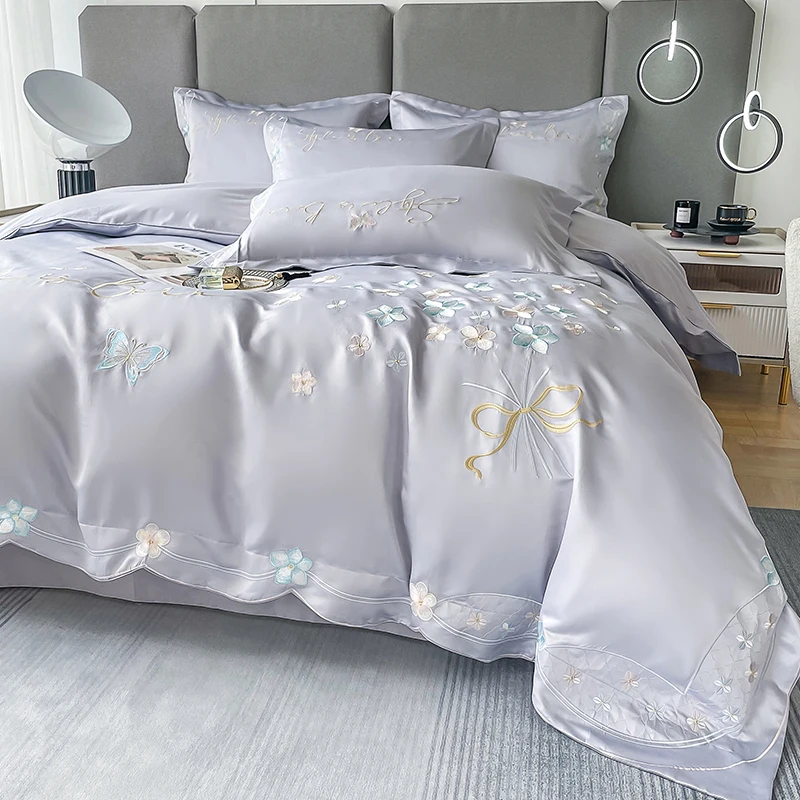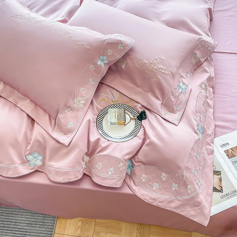 Luxury Pisoshare Bedding Set Luxury 120s Pure Egyptian Cotton Exquisite Embroidery Duvet Cover Flat Or Fitted Bed Sheet And Pillowcases Bedding At A Low Price [Nt854Ika]