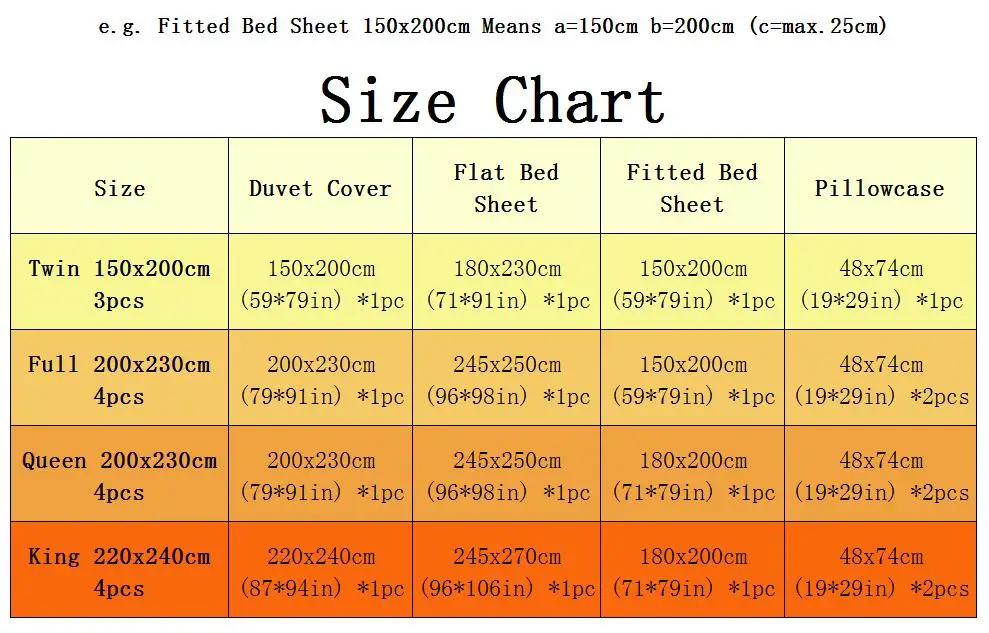 ♥ Duvet cover: 79x91inches Flat Bed Sheet: 96x98inches Pillowcase: 19x29inches x2