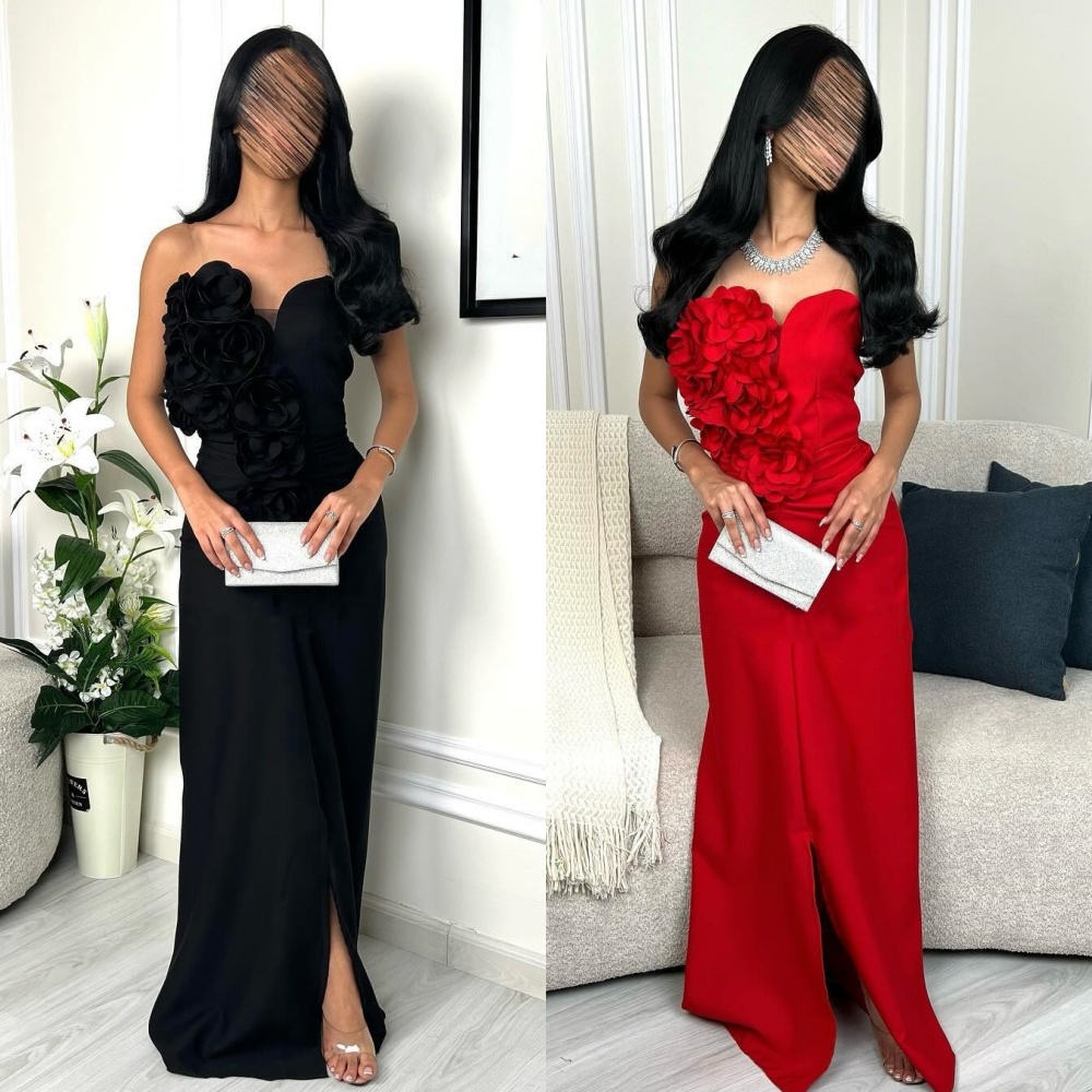 Complete Kukombo Customized Modern Style Intricate Handmade Flower Pleat Ruched Straight Strapless Long Dresses Bespoke Occasion Dresses Classic (pre-order) Perfect Gift [qw5SiVNL]