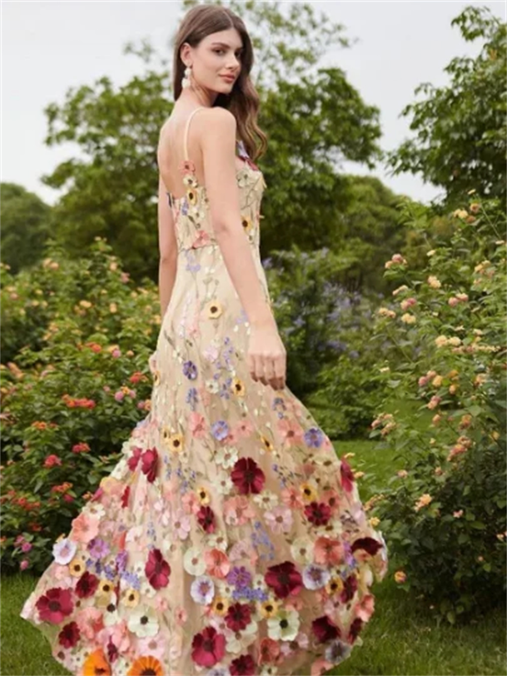 Seasonal Pick Kukombo Colorful 3d Flowers Lace Sleeveless Boho Wedding Dresses A-line V-neck Spaghetti Straps Country Bridal Gowns-(pre-order) Instant 30% Discount [eHRjQhWE]