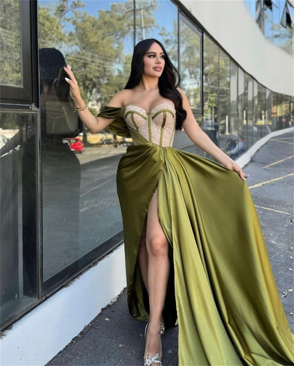 Modern Design Kukombo Green Satin Beaded Prom Gown Off The Shoulder Mermaid Evening Formal Elegant Sleeveless Side High Split Party Dresses-(pre-order) Now On Sale [VntMK3ab] Description Brand Name: Kukombo Fabric Type: SATIN Pattern Type: others Age-targeted: All age Neckline: Scoop Tr