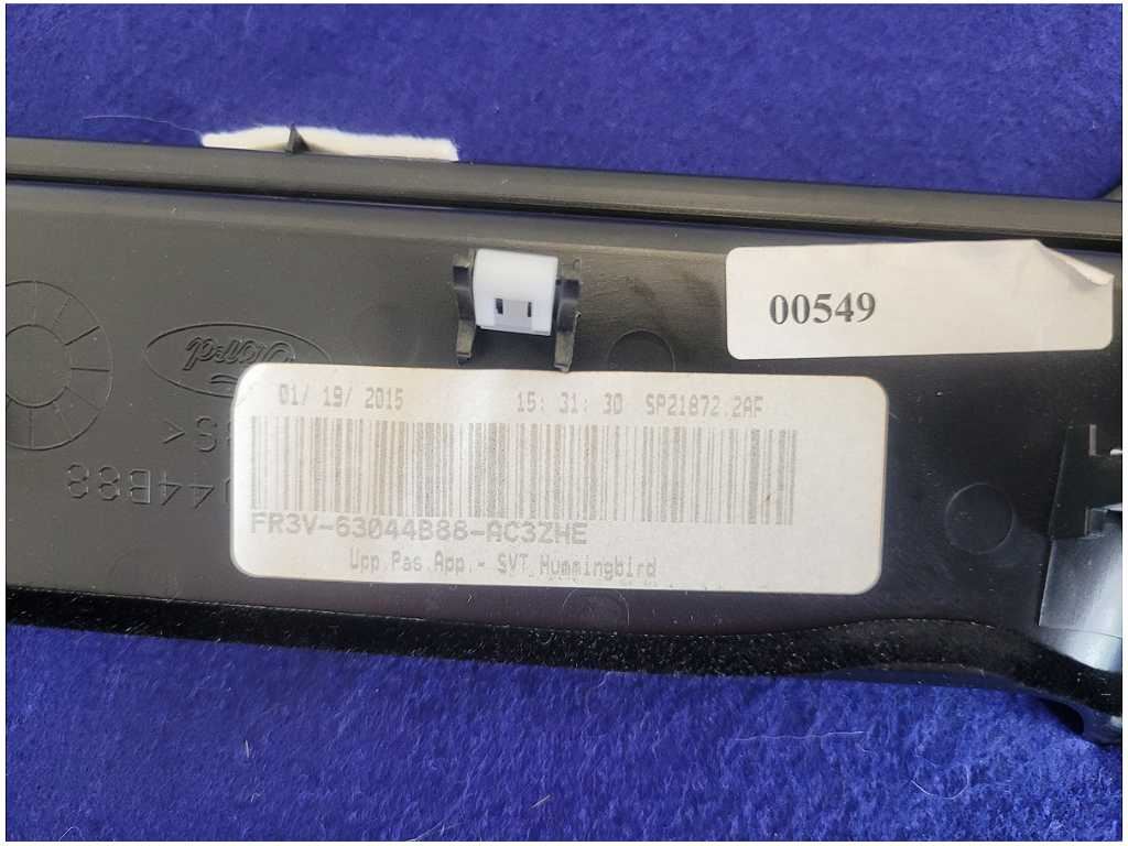 Passenger Dash Plaque that was removed from a 2016 Ford Mustang GT350 Coupe with 49k miles. Assembly is still in good condition!! We do not warranty the color or finish. We believe you will be refinishing the part to be perfect. Make sure you verify the part numbers. Please view all pictures before purchasing. This Ford Mustang GT350 Coupe had a manual transmission with paint code YZ and axle code BB 3.73.