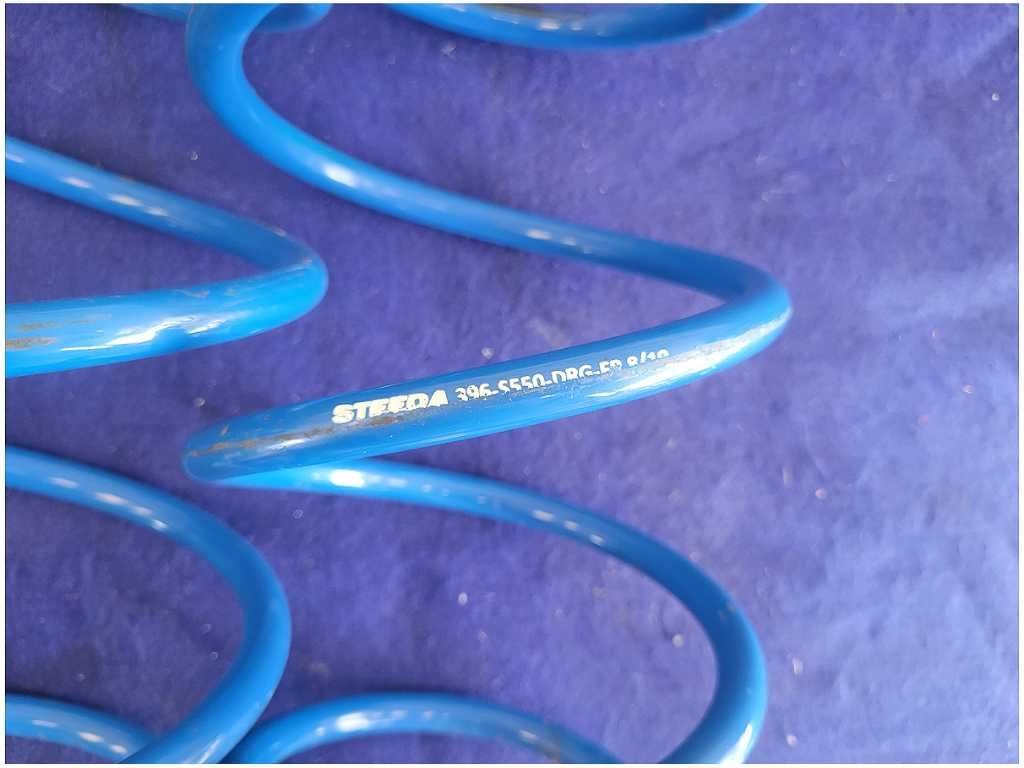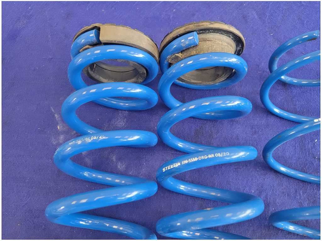 Set of Steeda Lowering Springs that was removed from a 2019 Ford Mustang GT Coupe with 21k miles. Assembly is still in good condition. We believe you will be refinishing the part to be perfect. We do not warranty the color or the finish. Make sure you verify the part numbers. Please view all pictures before purchasing. This Ford Mustang GT Coupe had a automatic transmission with paint code G1 and axle code YY 3.15.