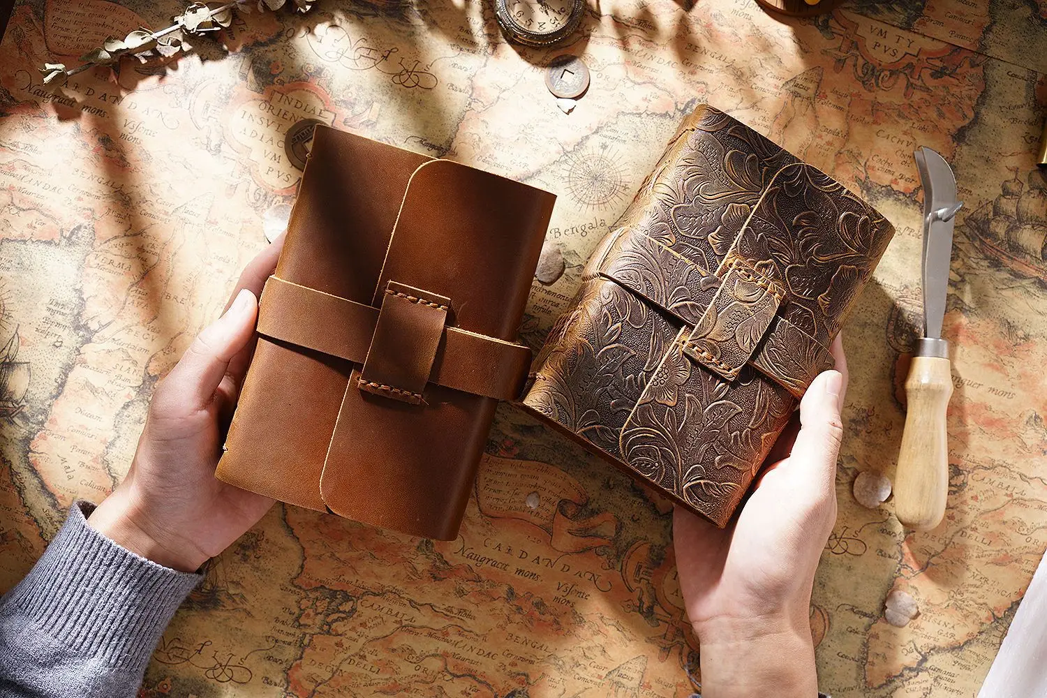 Crafted from genuine cowhide leather, this notebook/journal has a handcrafted vintage look and feel.
