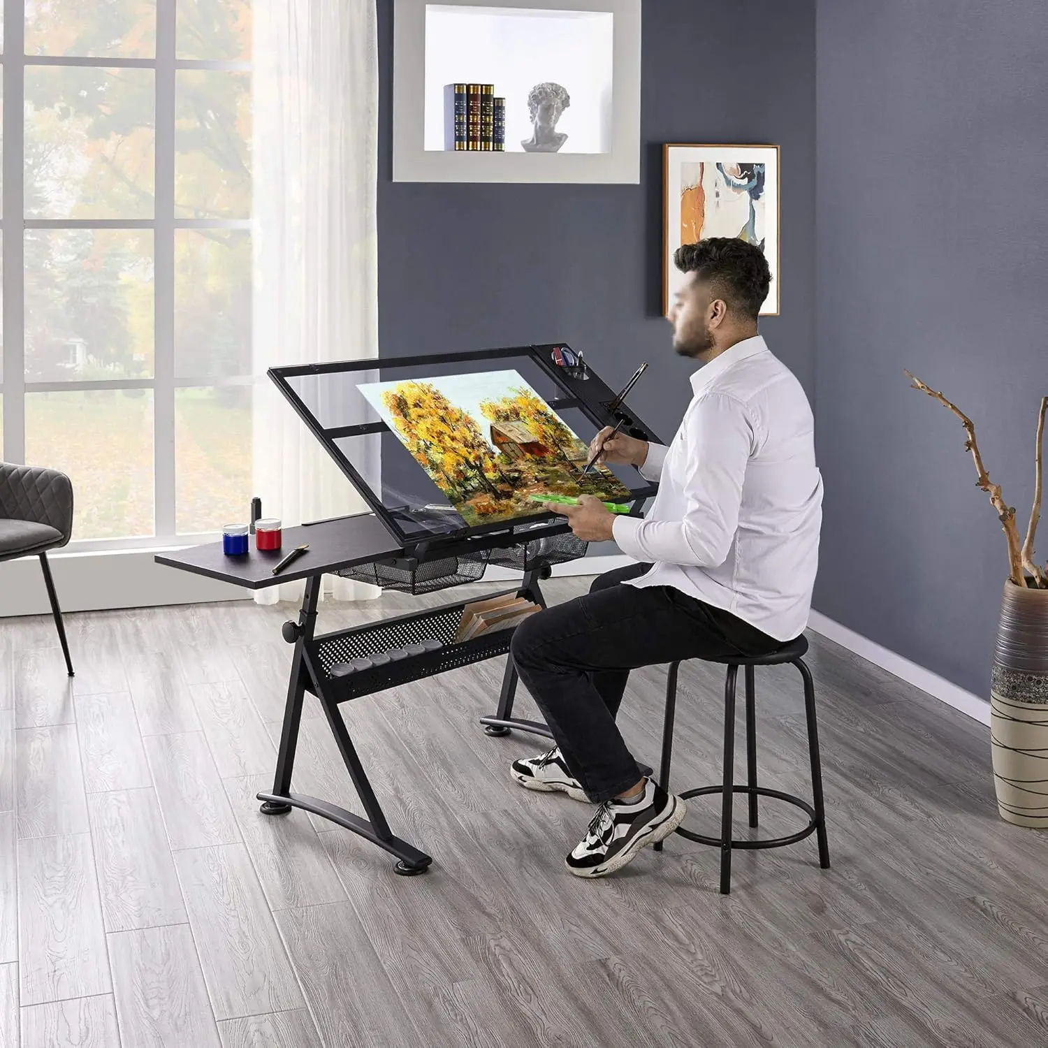 SPECIFICATIONSBrand Name: XMSJHign-concerned Chemical: NoneInstallation Method: AssemblyOrigin: US(Origin)Limited Edition Drafting Table W/stool Height Adjustable Multifunctional Art Craft Artists Desk Tilting Glass Tabletop Diamond Paintings Now 65% Cheaper [OyAUvh3M] Work Station w/2 Storag