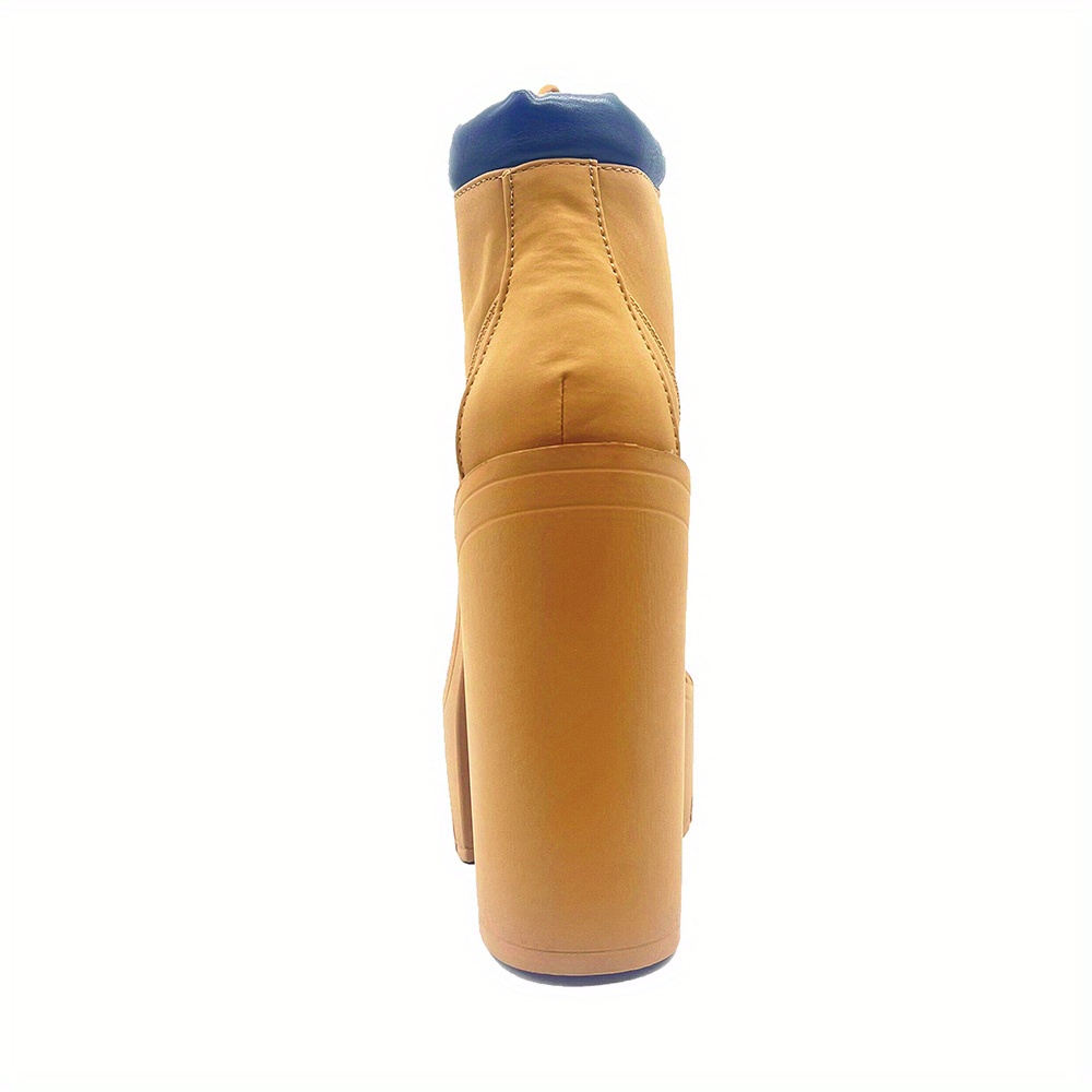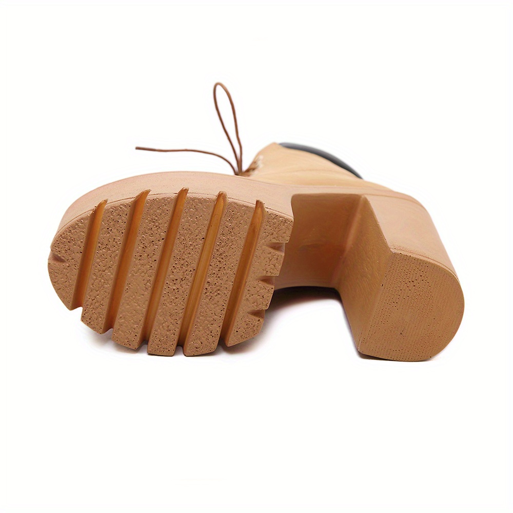 Heavy-duty Women's Chunky Heeled Short Boots - Round Toe Lace Up High Heels, Solid Color Waterproof Platform Shoes - For Women - Suitable For Parties, Night Out, Dates - Perfect Gift For Fashionable Women Slash 60% Off The Price [PRJu735Y]