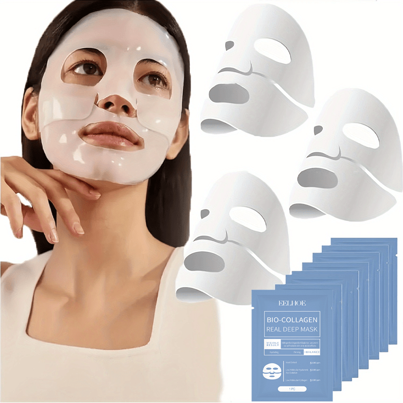 Dad Approved 20pcs Bio-collagen Real Deep Facial Masks, Unisex Adult Moisturizing Skincare, Full-face Split Sheet Masks, Sleep Mask For Hydration, With Hyaluronic Acid & Nicotinamide, Soothing, Unscented, Alcohol-free, With Suitable For A Click To View [zD34x8G5]
