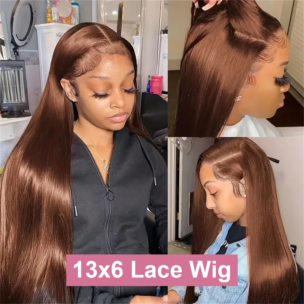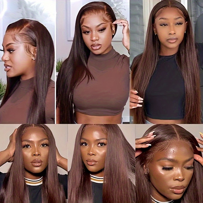 Luxury 250% Density Silk Straight Wigs 100% Brazilian Human Hair 13*6 Hd Transparent Lace Deep Parting Pre Plucked Natural Hairline Chocolate Brown Straight Human Hair #4 Color Wig Suitable For All Women ~ Rare Item [kdHchZzt]