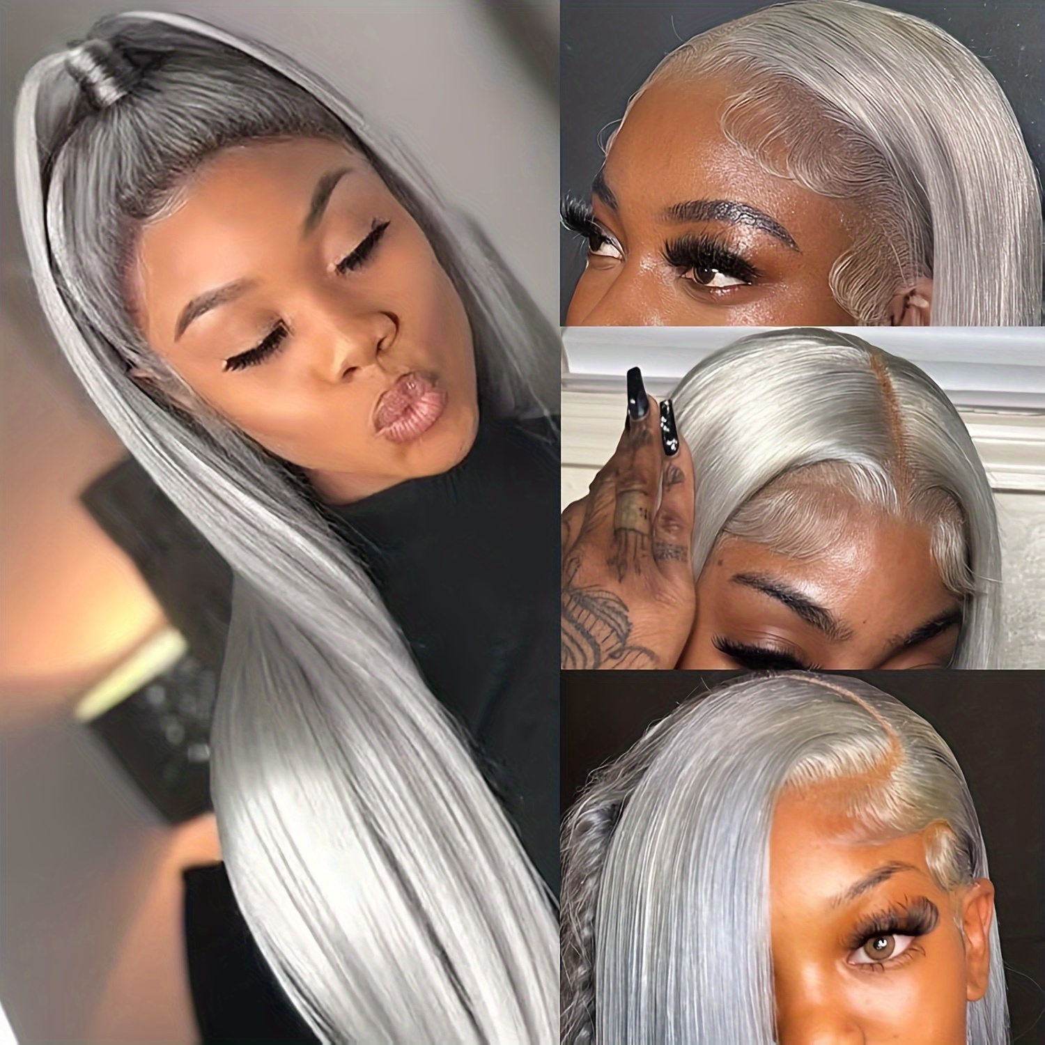 Hot Item Silvery Grey 13x4 Transparent Lace Frontal Wig 26 Inches Silvery Straight Lace Front Wigs For Women 180% Density Synthetic Heat Resistant Fiber High Temperature Fiber Straight Glueless Lace Wig Natural Straight Long Lace Wig - Today Only [CY12B7Tv]