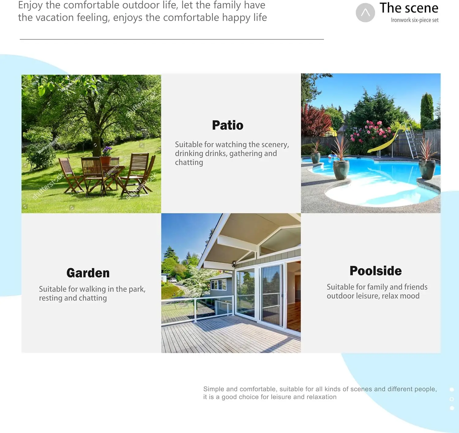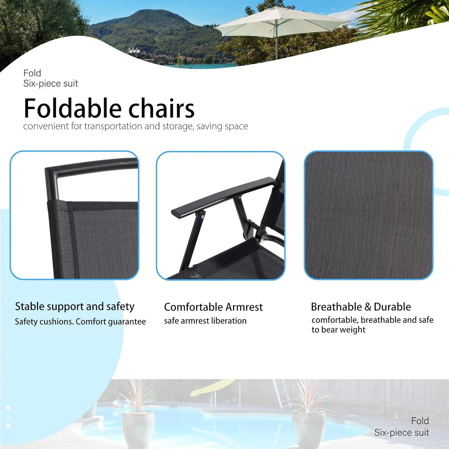 SPECIFICATIONSBrand Name: XMSJ Tesilin6 Piece Outdoor Table and Folding Chair Set with Umbrella: This patio garden set is the best selection for your outdoor life. Coming with a large patio umbrella add extra shade for your outdoor life. Perfect fit