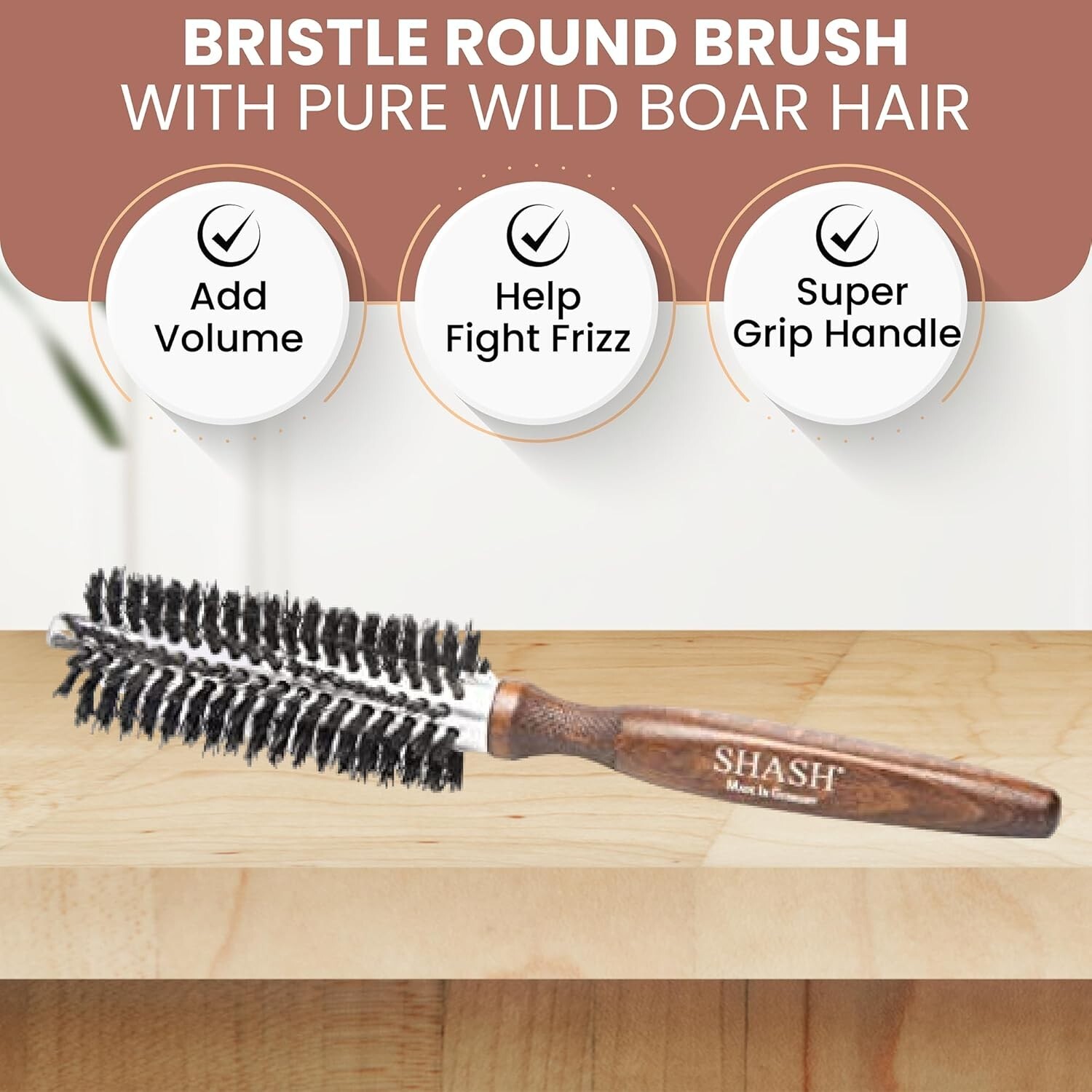 Premium Boar Bristle Round Brush with Super-Grip Handle - Volume & Smoothness