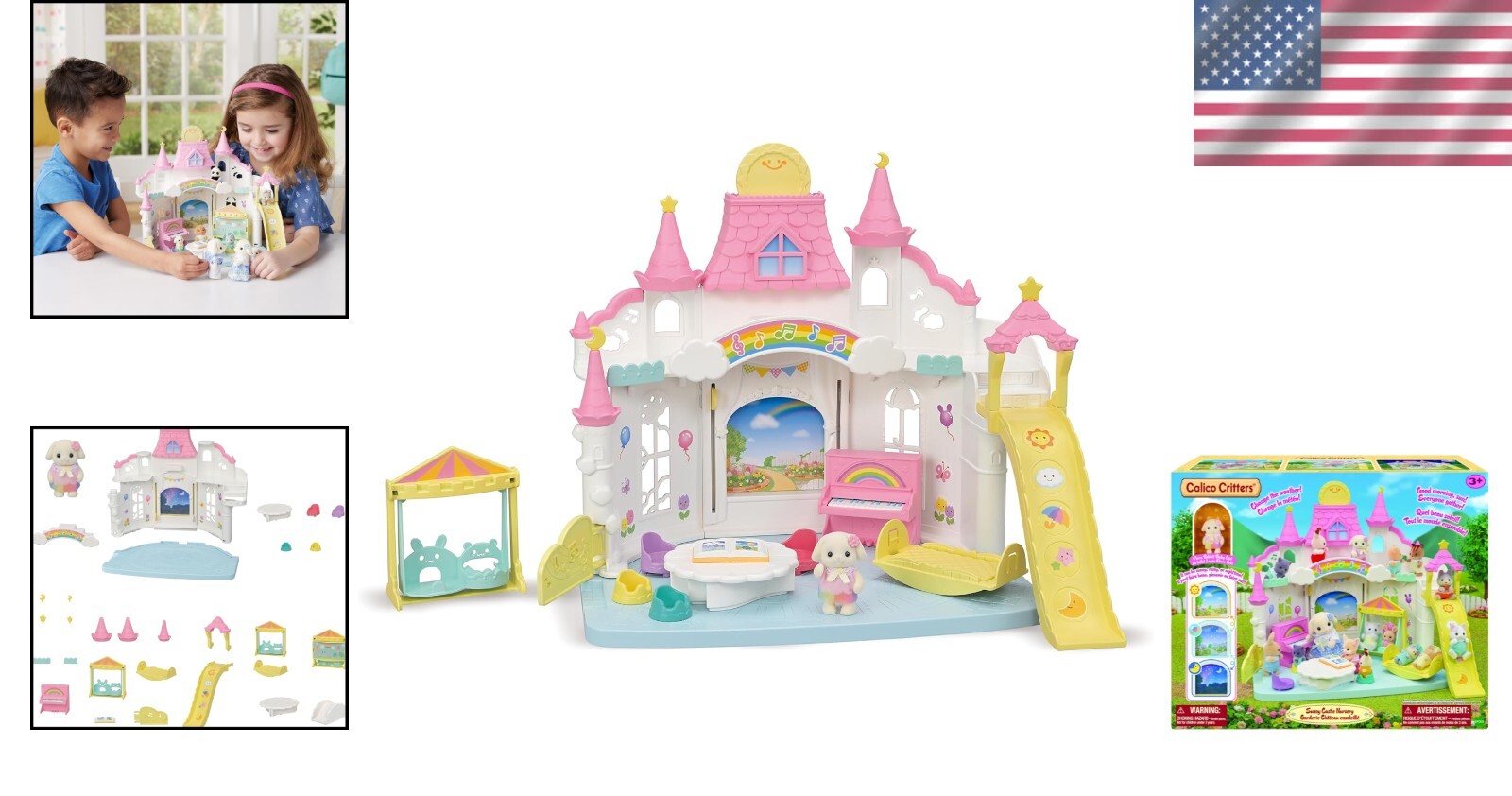 - Expandable Playset: Combine with the Rainbow Fun Nursery Bus, Nursery Sandbox & Pool, and other Flora Rabbit Family sets (sold separately) to create a grand nursery that resembles a majestic castle.