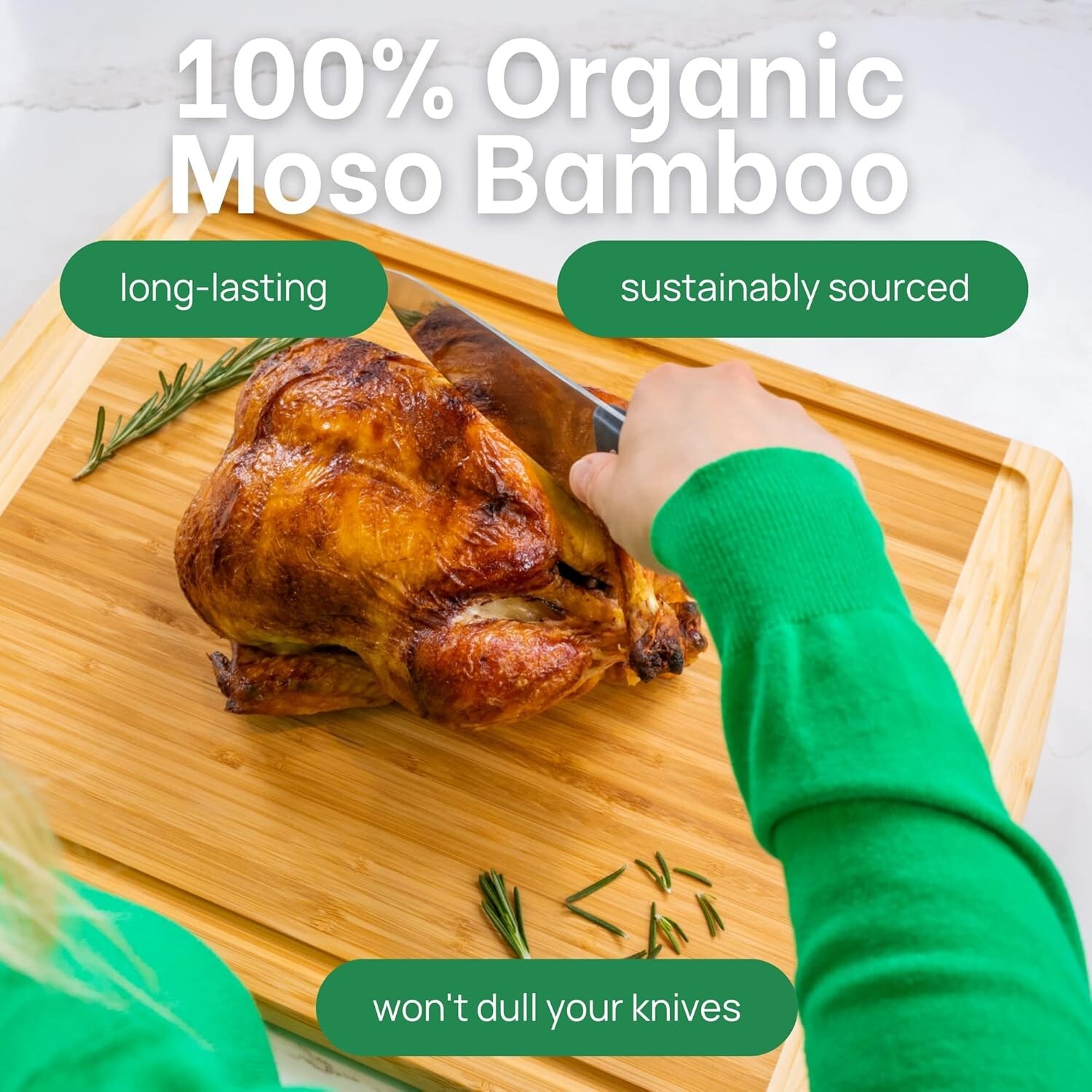 Invest in a cutting board that not only complements your kitchen aesthetics but also aligns with eco-conscious values. Experience the joy of cooking with a piece that is as beautiful as it is practical - order your XL Bamboo Cutting Board today!