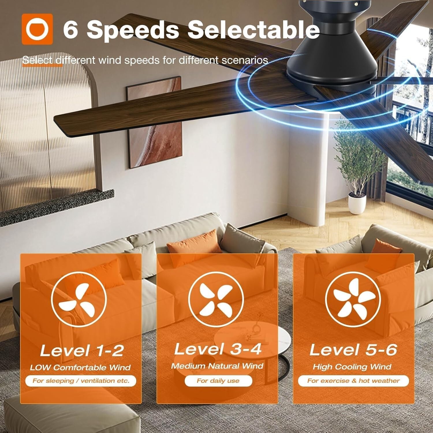 - Reversible DC Motor: Six adjustable wind speed settings and reversible rotation enhance air circulation, keeping you warm in winter and cool in summer.
