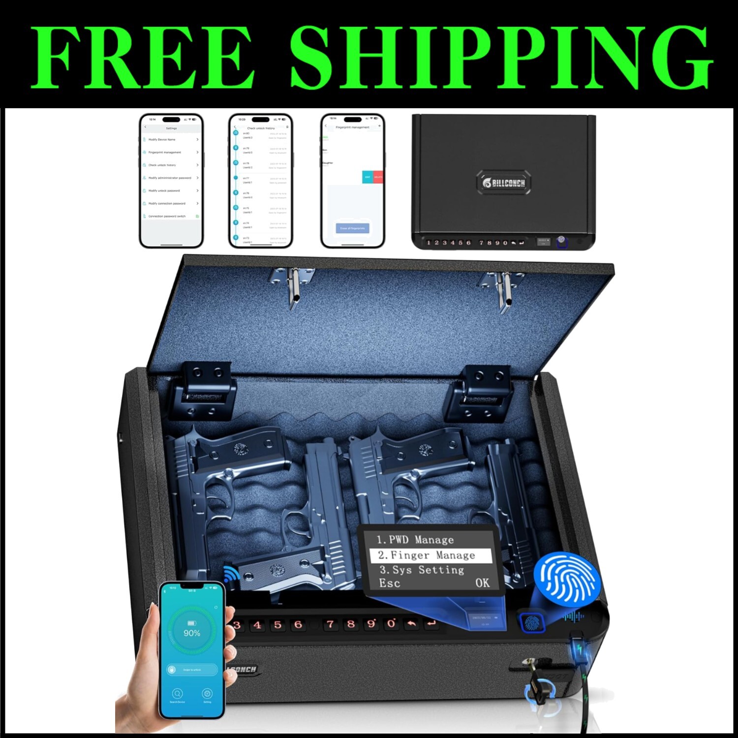 - Convenient App Operation: Connect effortlessly via your phone APP, unlocking your gun safe with a simple slide of the screen. Monitor battery life, manage up to 40 fingerprints, and review unlocking records with ease.