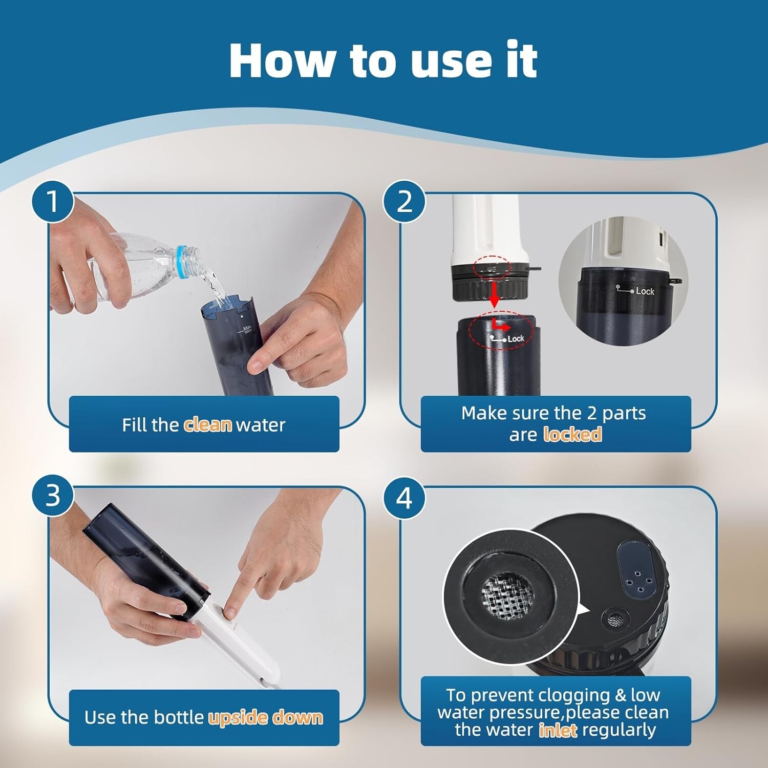 - Water Filling Mode: Compatible with larger volume containers using a handy bottle adapter that connects seamlessly. Ideal for outdoor use. (Note: Fits short-threaded bottles with diameters of 0.96 inches.)