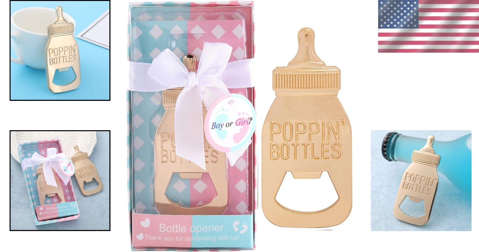 This 48-pack of POPPIN BOTTLES bottle openers features a captivating blue and pink gift box that creates an unforgettable surprise for the soon-to-be parents during the big reveal! Beyond serving as a decoration for your celebrations, these unique bottle openers will undoubtedly be a hit with your guests, making them a favorite favor.