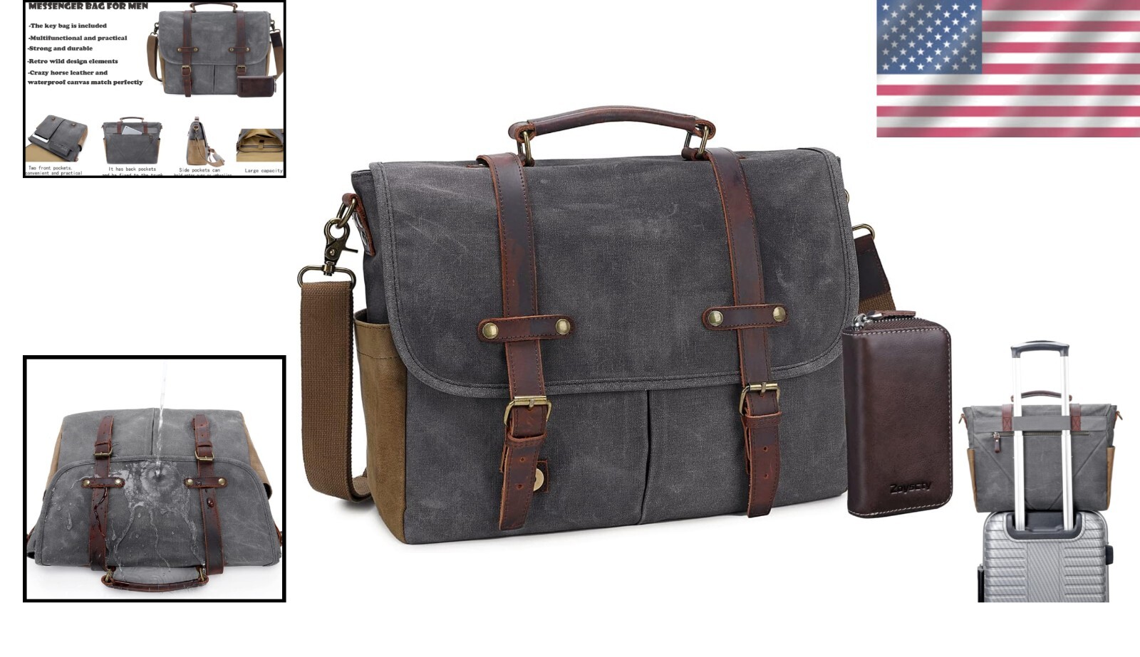 | Theme: Not Set | Features: Adjustable Strap,Pockets,Waterproof | Lining Material: Leather | Handle/Strap Material: Leather,Canvas |