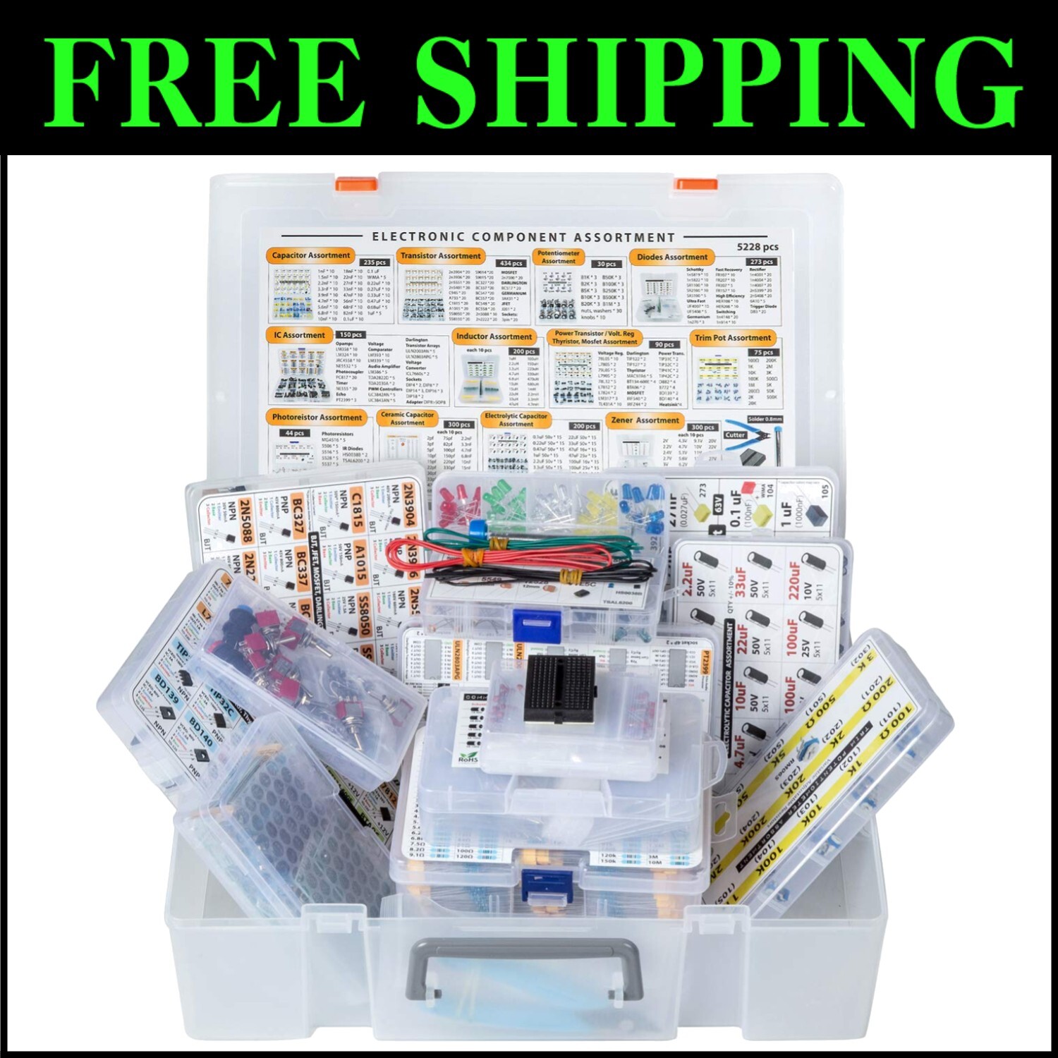 Fast Shipping Comprehensive 5228-piece Electronic Parts Box - Capacitors, Diodes, Transistors Customer Approved [pZc5bHR1]