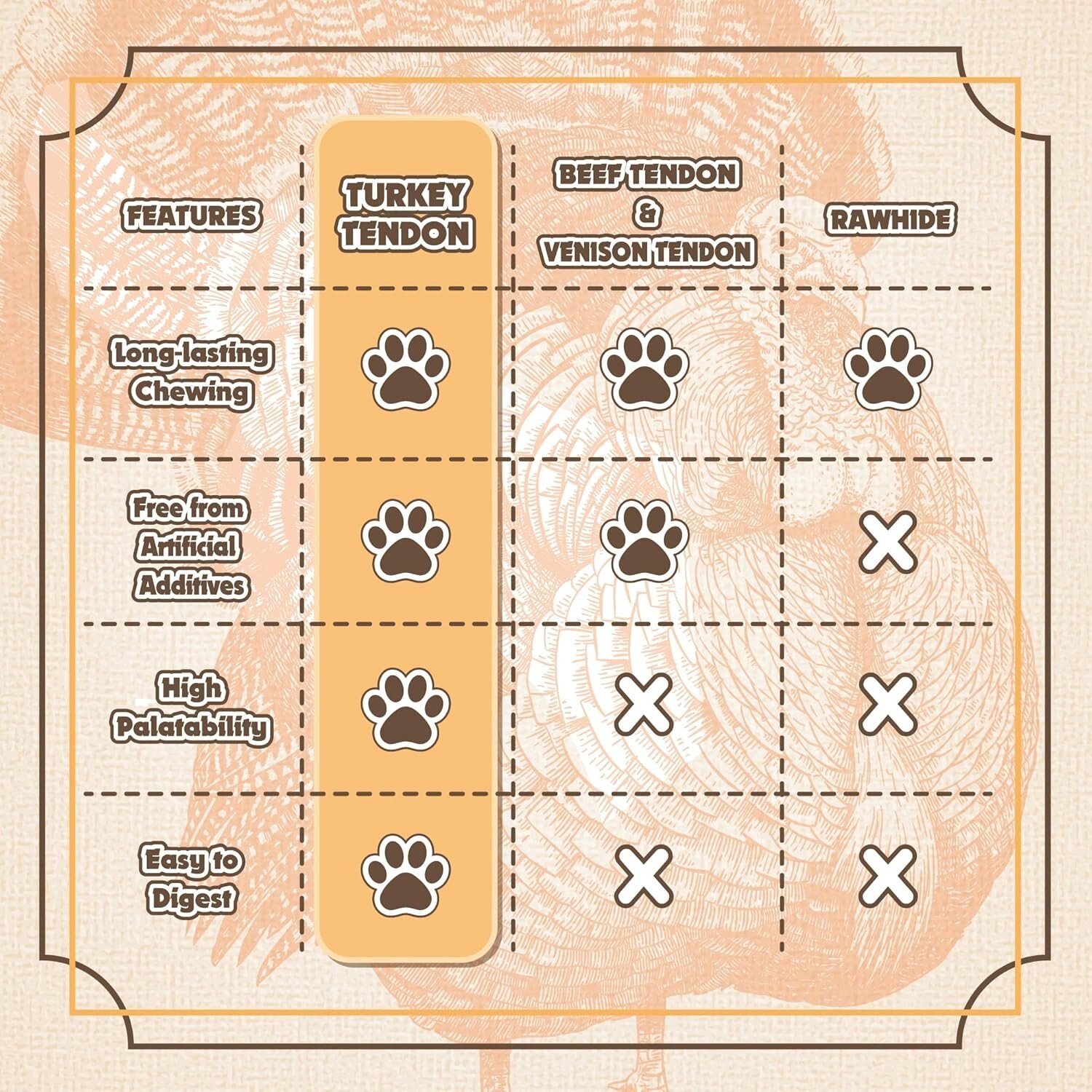 - 100% US-Sourced Turkey: Committed to quality, our turkey tendon treats are made entirely from premium turkey sourced from the USA.