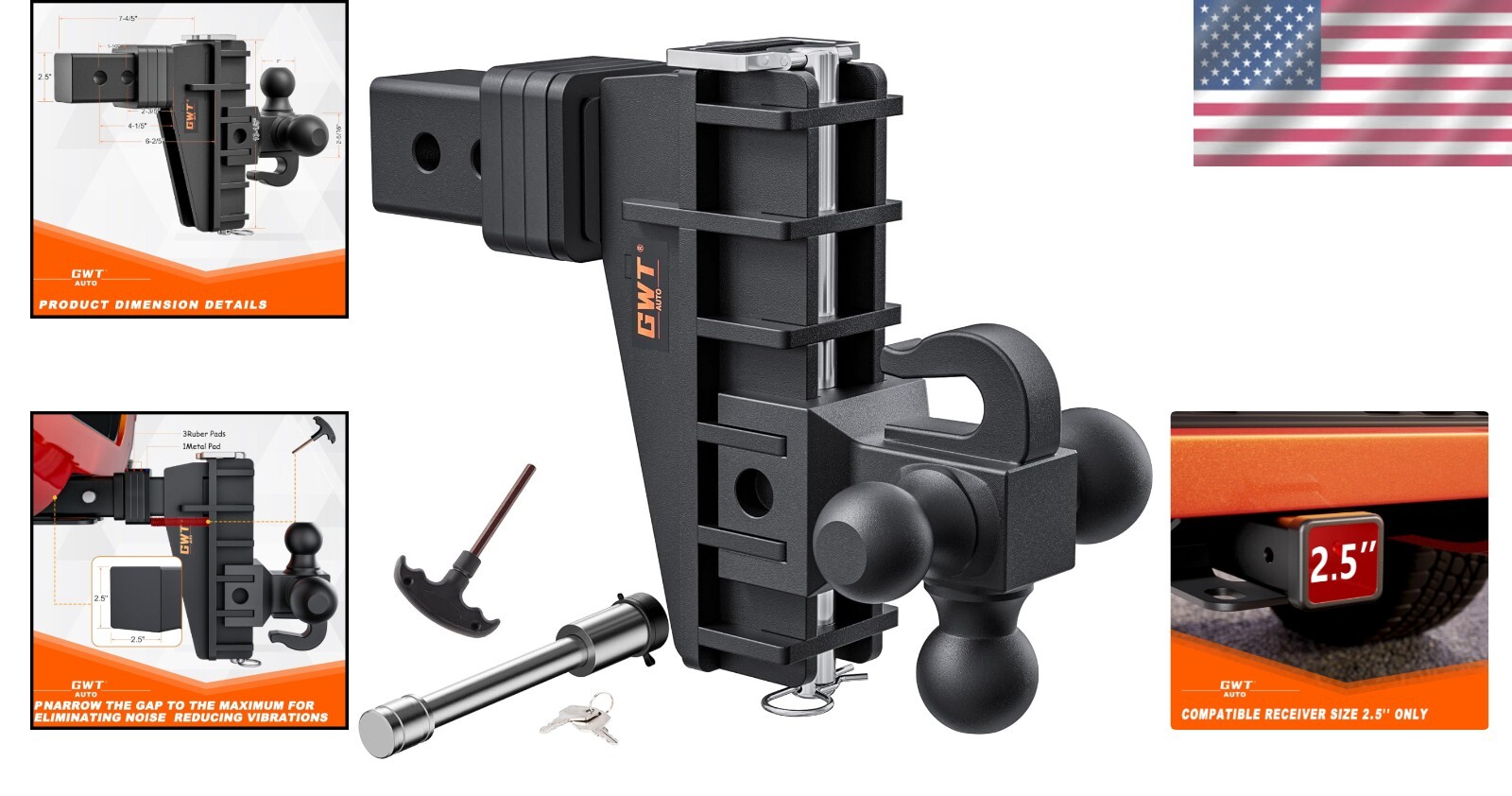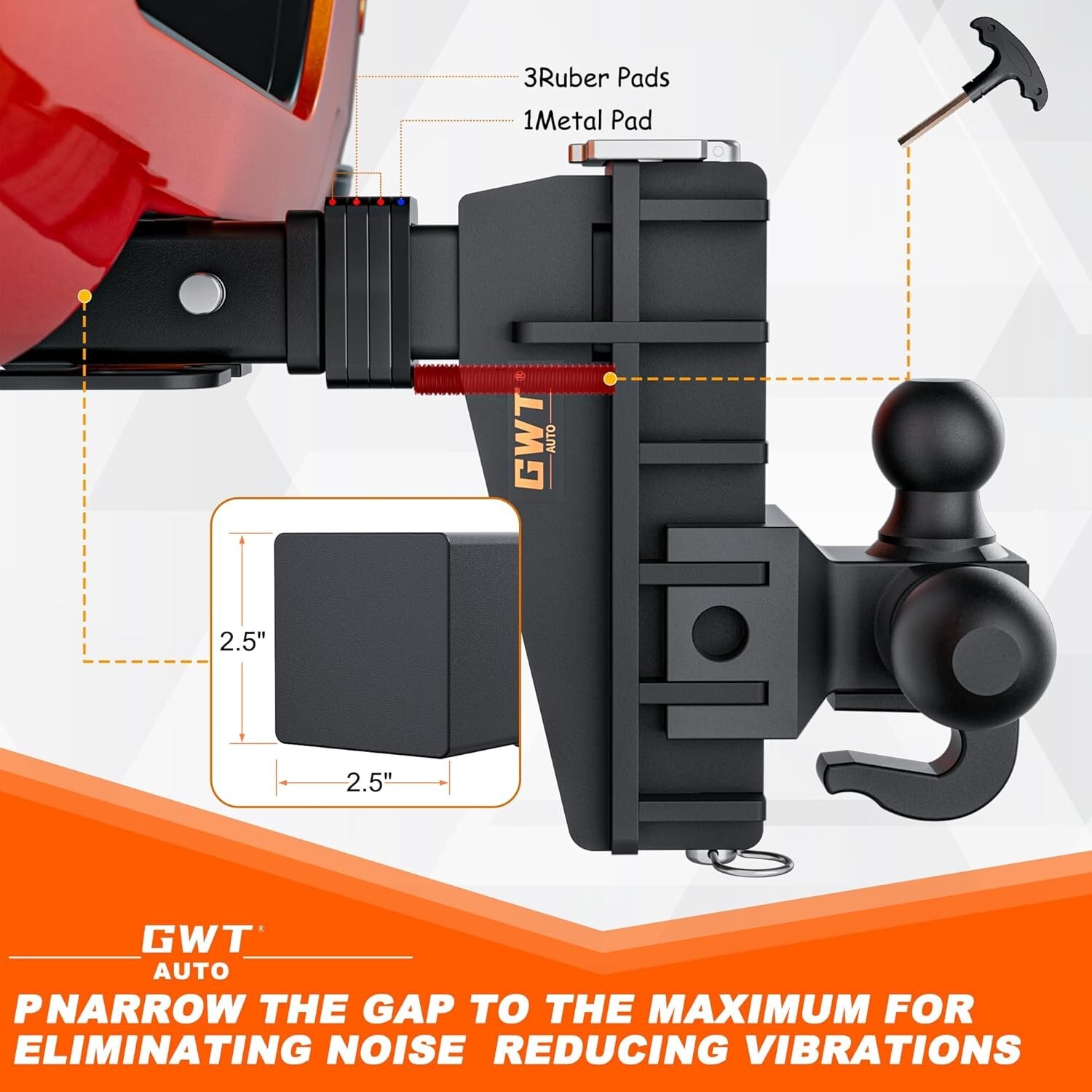 Tri-Ball Hitch with 2.5-Inch Receiver & 18500 lbs Capacity - Noise Dampening