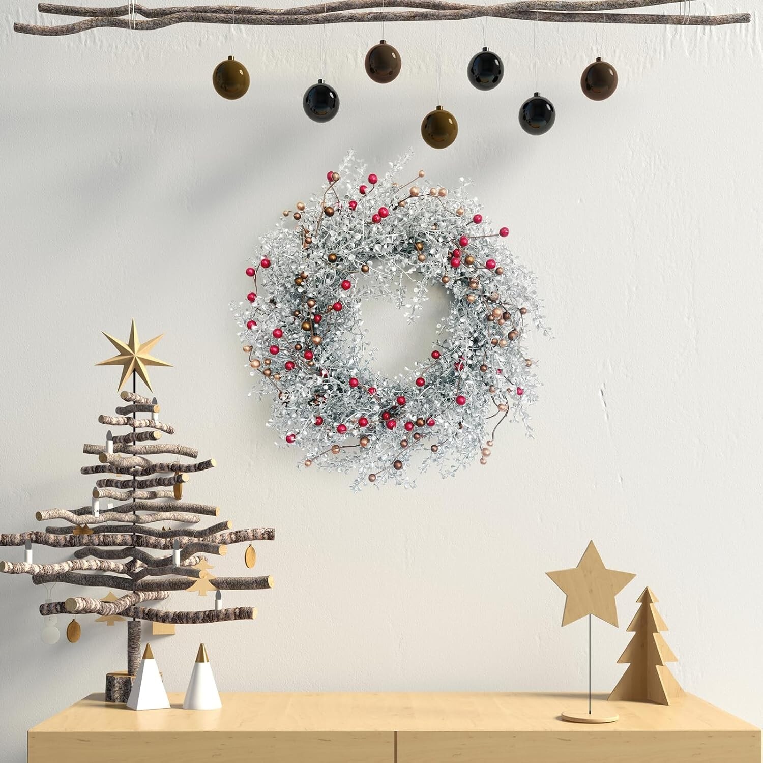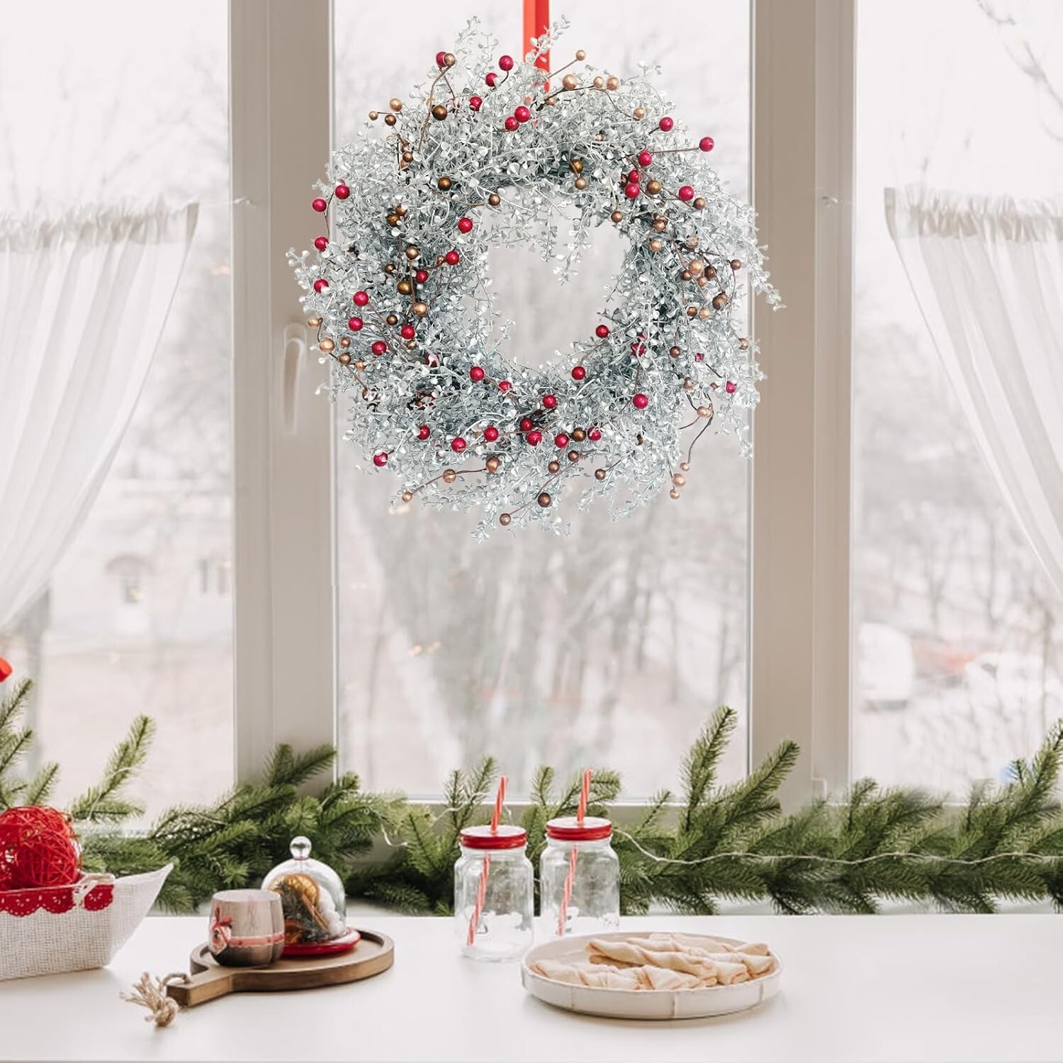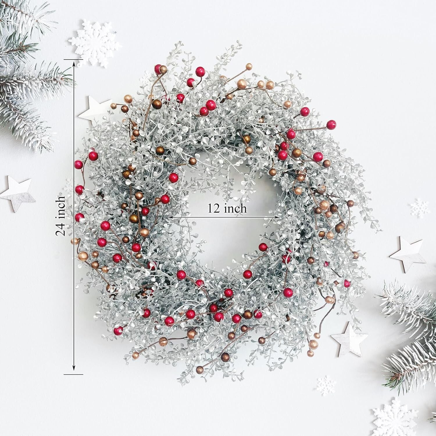 | Occasion: Winter | Color: Silver-Red | Type: Wreath | Artificial/Fresh: Artificial |