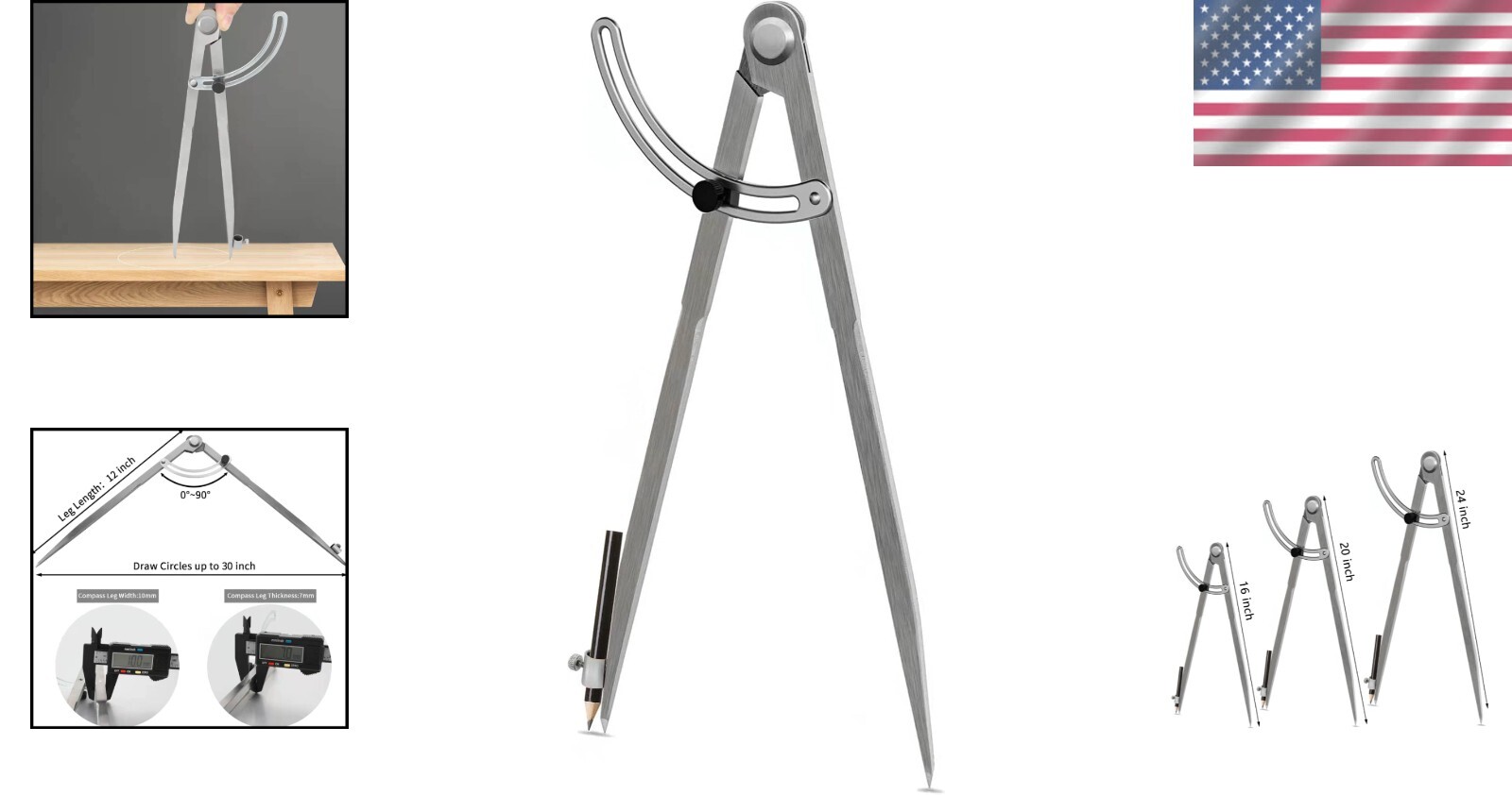 - Large Size: This professional all-metal compass is available in sizes 16", 20", and an impressive 24". Ideal for woodwork, metalworking, leatherworking, and mathematical precision.