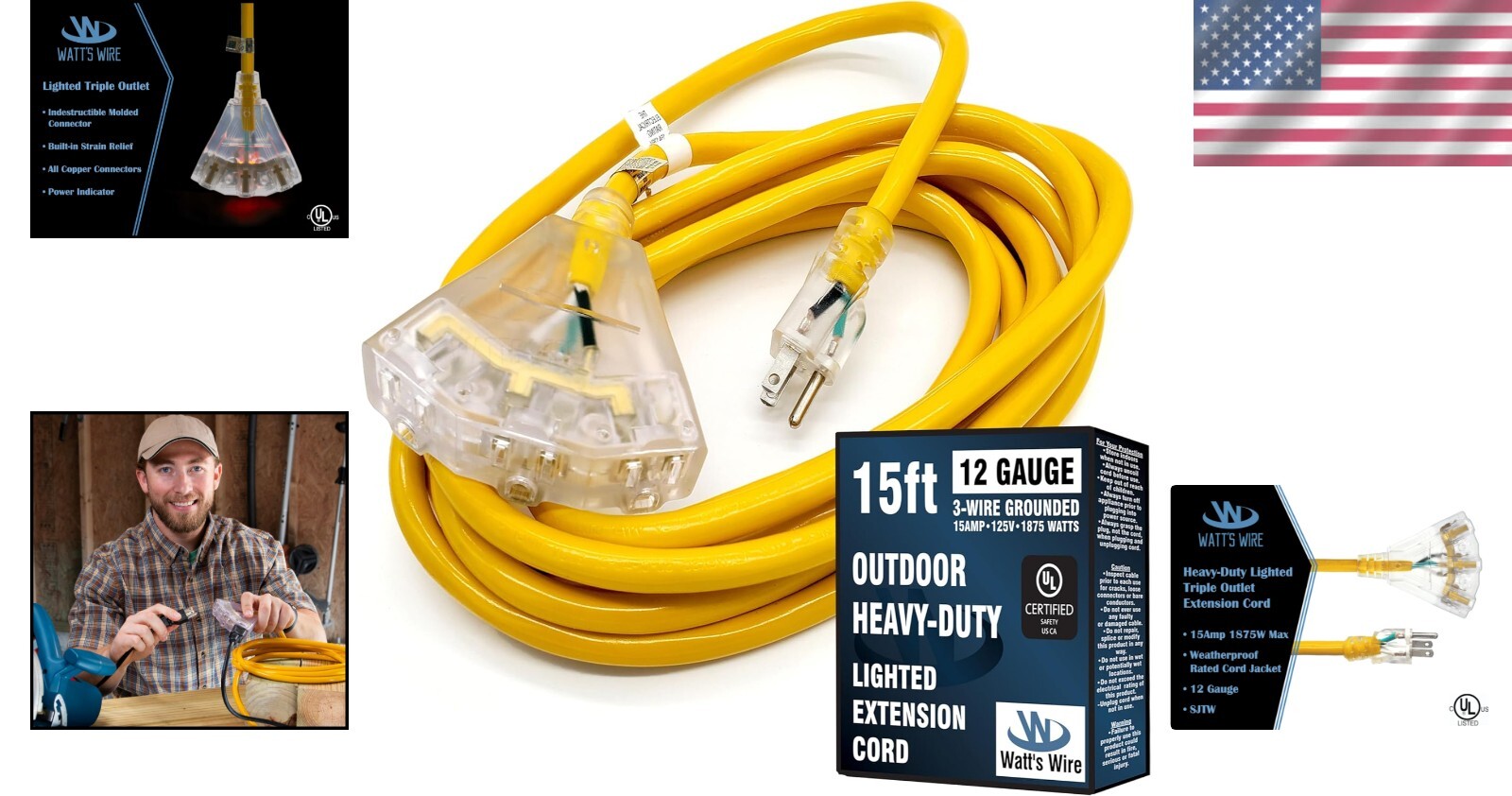 Spring Sale Weather-resistant 15ft 12 Gauge Extension Cord With 3 Outlets - Lighted Design - Don't Overpay [3hIoWFYt]