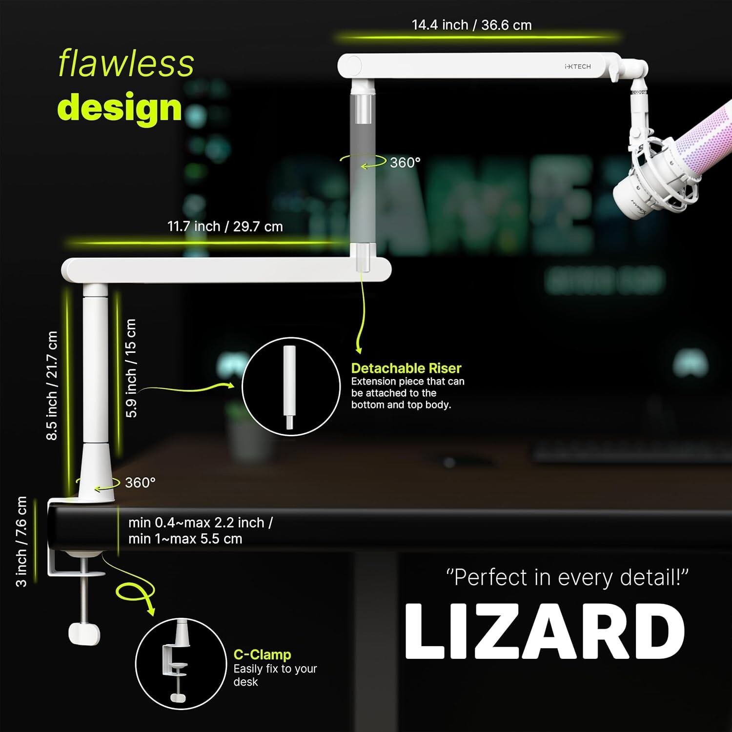 High-quality Lizard White Adjustable Microphone Boom Arm With Cable Management 360° Swivel Accessory [nXYtkmEZ]