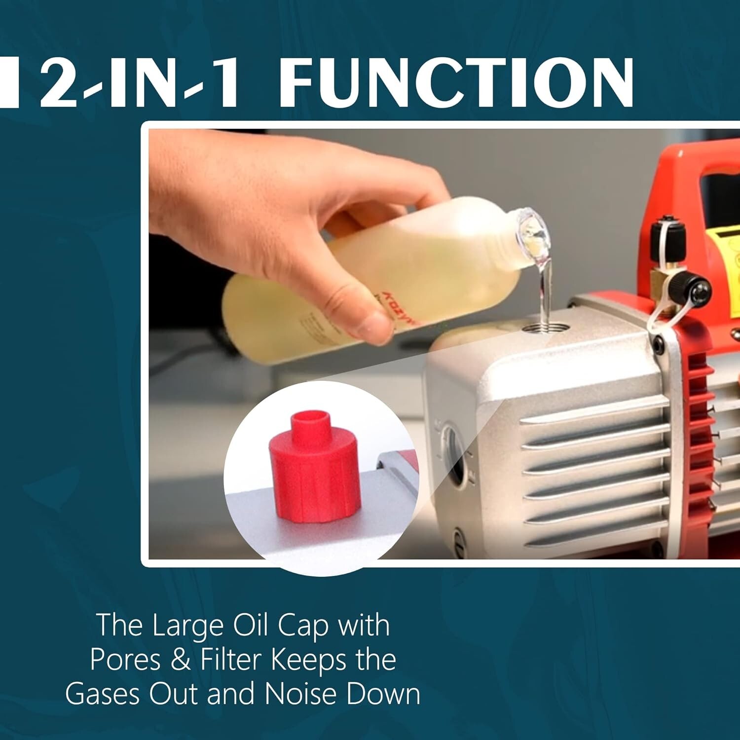 - ✅ Specifications: Flow Rate: 5.0 CFM, Ultimate Vacuum: 50 Micron, 1/2HP AC Air Tool Rotary Vane, Inlet Port: 1/4 Flare and 1/2 Male, Voltage/Frequency: 110V/60Hz, Oil Capacity: 380 ml.
