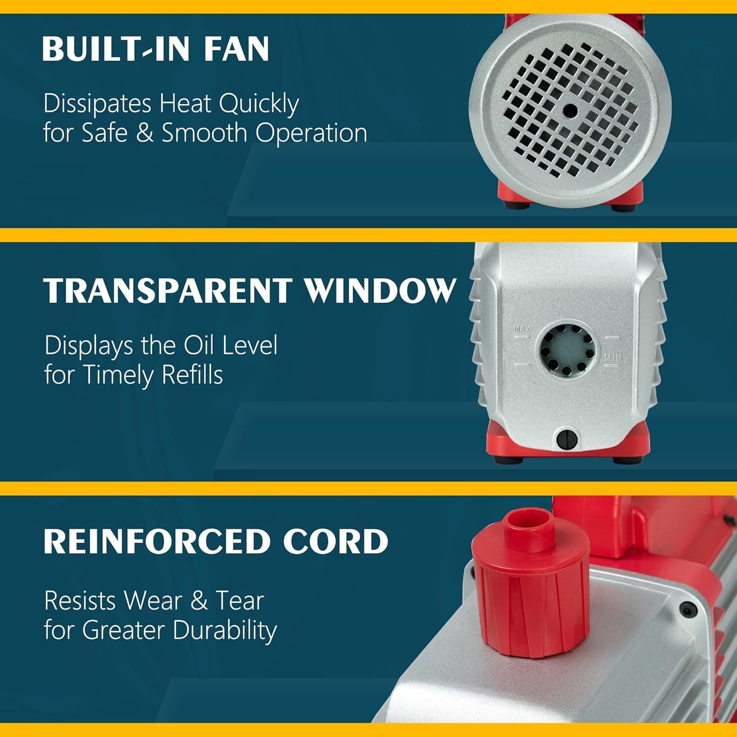 Back To School Compact Dual Stage Vacuum Pump With Ac Kit - Ideal For Hvac Maintenance System [OyilChq1]