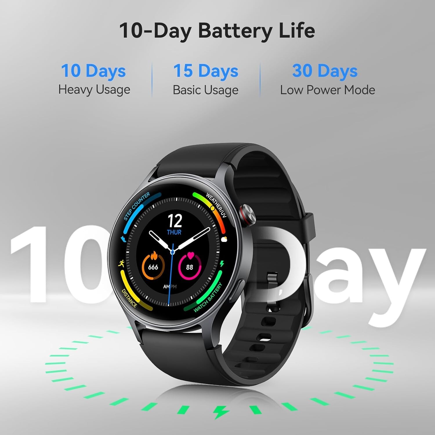 - 110+ Sports Modes & Waterproof: With over 110 sports modes, this fitness watch is designed to support a variety of activities, from yoga to swimming. Its 3ATM water-resistant design ensures reliability in wet conditions.