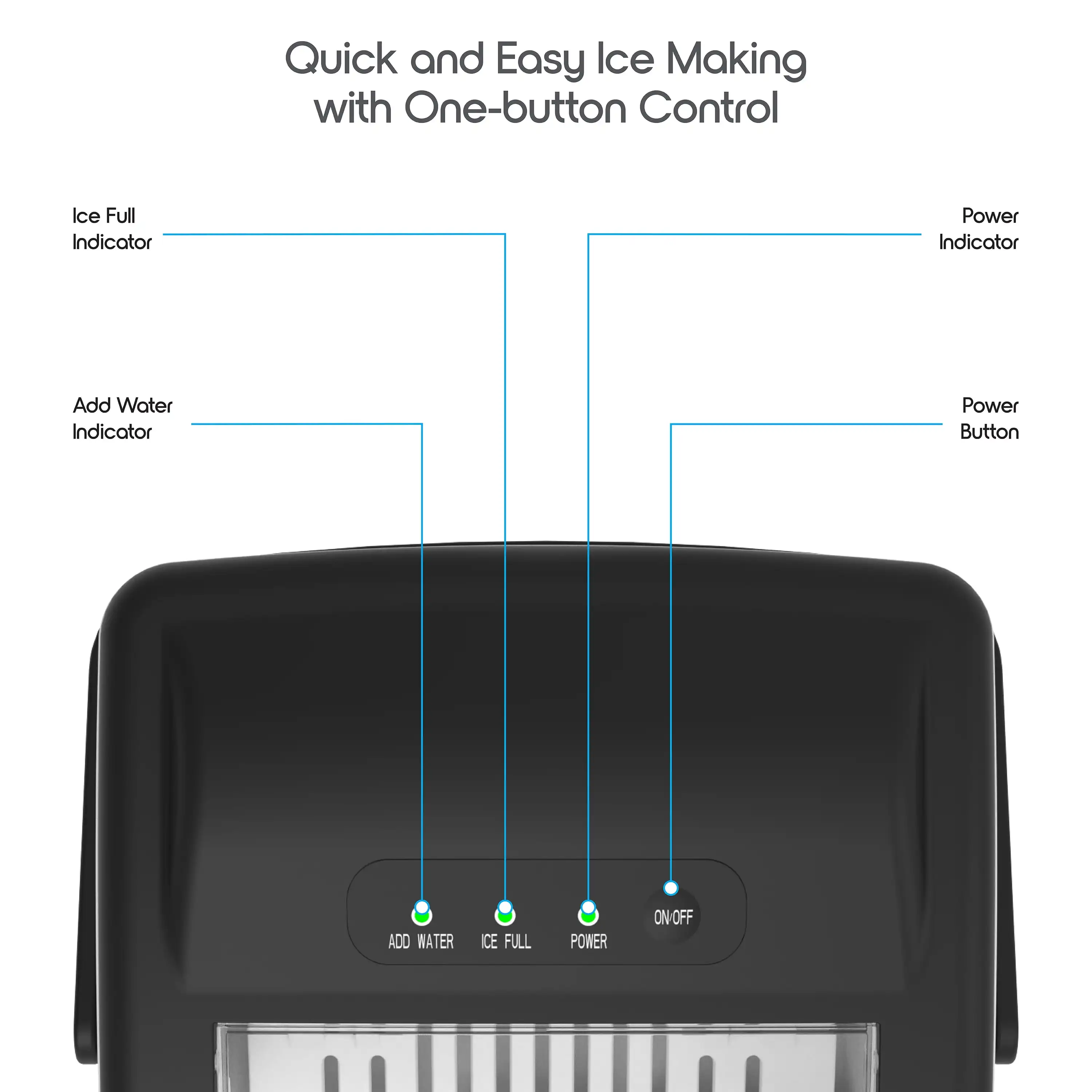 - Makes 9 ice cubes in just 9 minutes, and up to 26lbs of ice per day