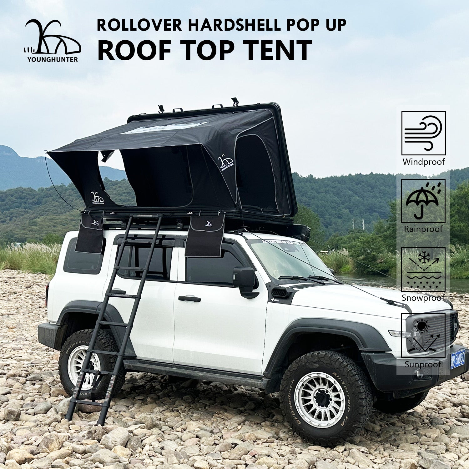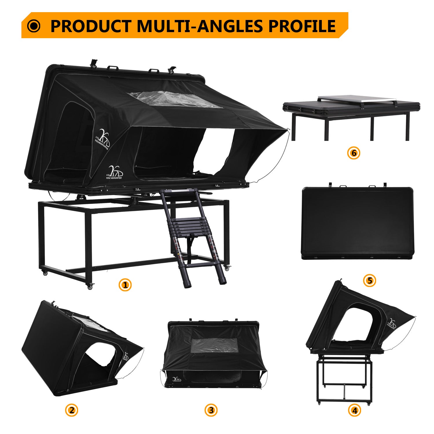 - Easy to open & close: Triangle rooftop tent is designed for quick setup. The construction is built-in gas struts to unfold up, In the camping easy to unlock button to open up and unfold poles and ladders.
